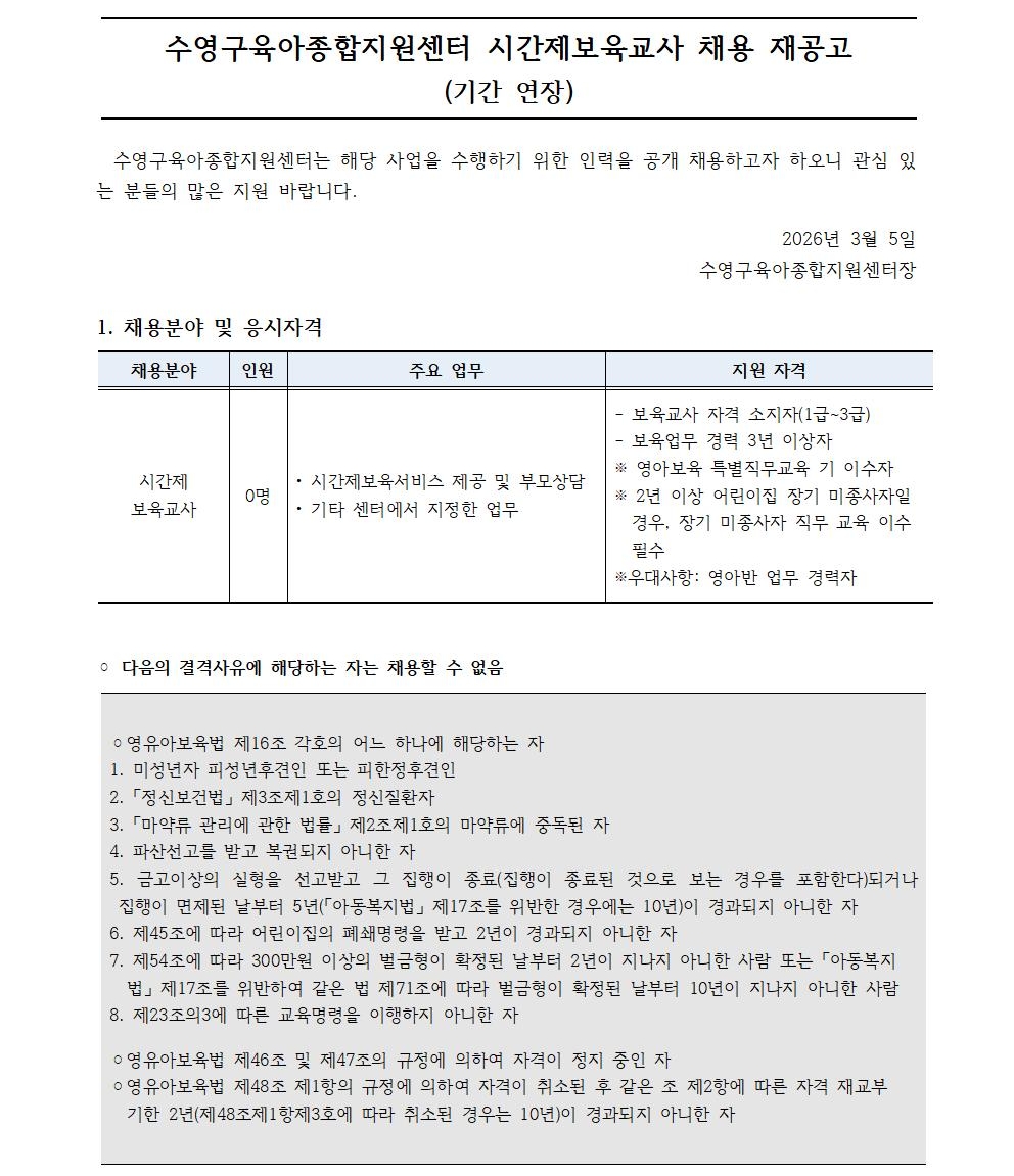 [°ø°í] ¼ö¿µ±¸À°¾ÆÁ¾ÇÕÁö¿ø¼¾ÅÍ ½Ã°£Á¦º¸À°±³»ç ä¿ë Àç°ø°í(±â°£ ¿¬Àå)