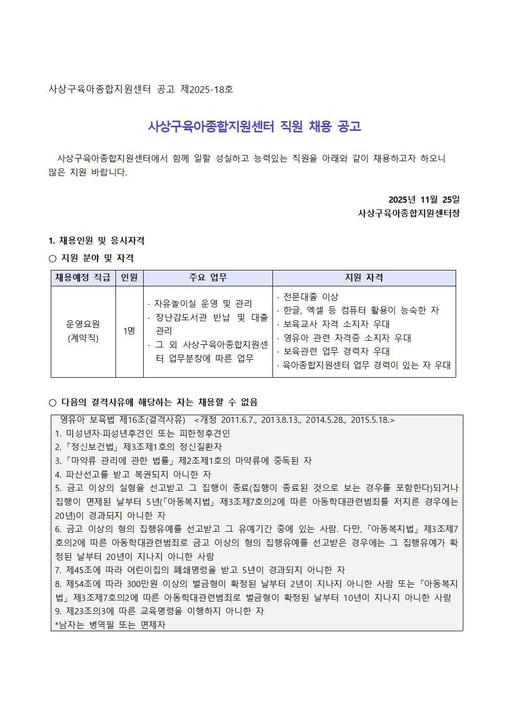 [»ç»ó±¸À°¾ÆÁ¾ÇÕÁö¿ø¼¾ÅÍ] ¿î¿µ¿ä¿ø ä¿ë °ø°í