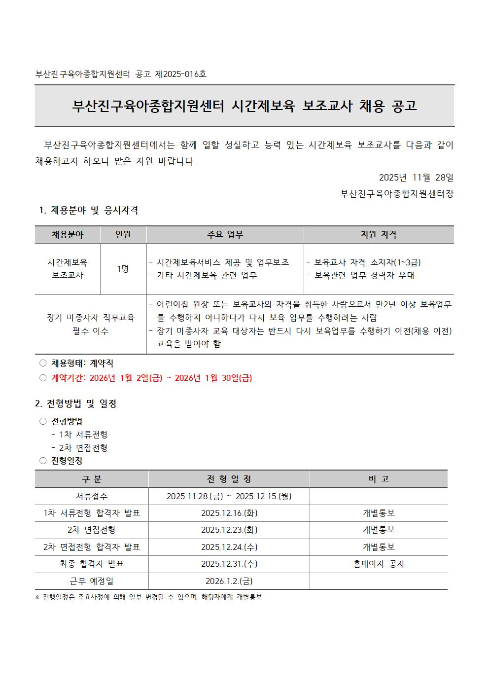 [ºÎ»êÁø±¸À°¾ÆÁ¾ÇÕÁö¿ø¼¾ÅÍ] Á÷¿ø ä¿ë °ø°í