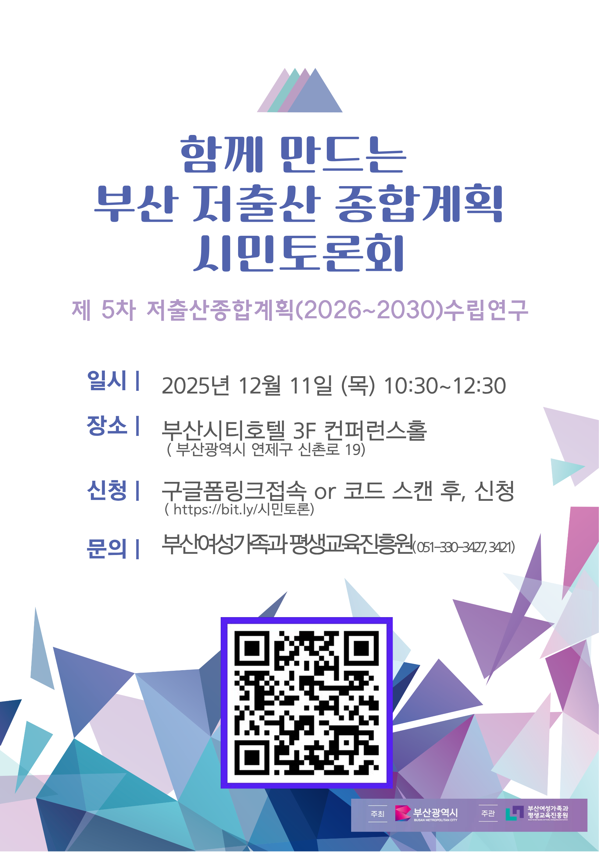 [ºÎ»ê¿©¼º°¡Á·°ú Æò»ý±³À°ÁøÈï¿ø] ÇÔ²² ¸¸µå´Â ºÎ»ê ÀúÃâ»ê Á¾ÇÕ°èȹ ½Ã¹ÎÅä·Ðȸ Âü¿©¾È³»