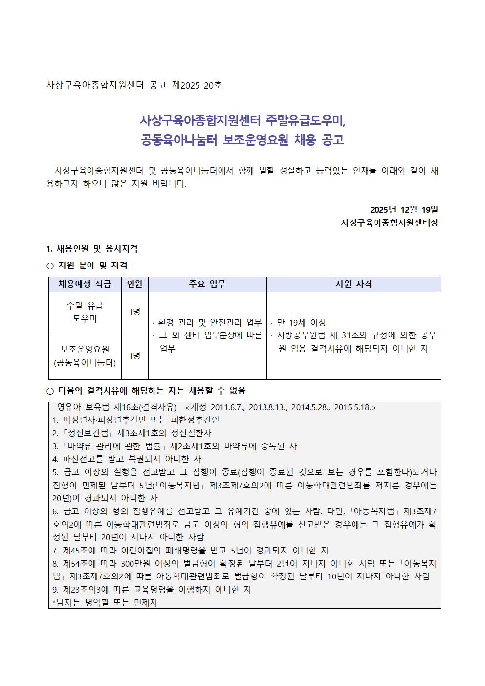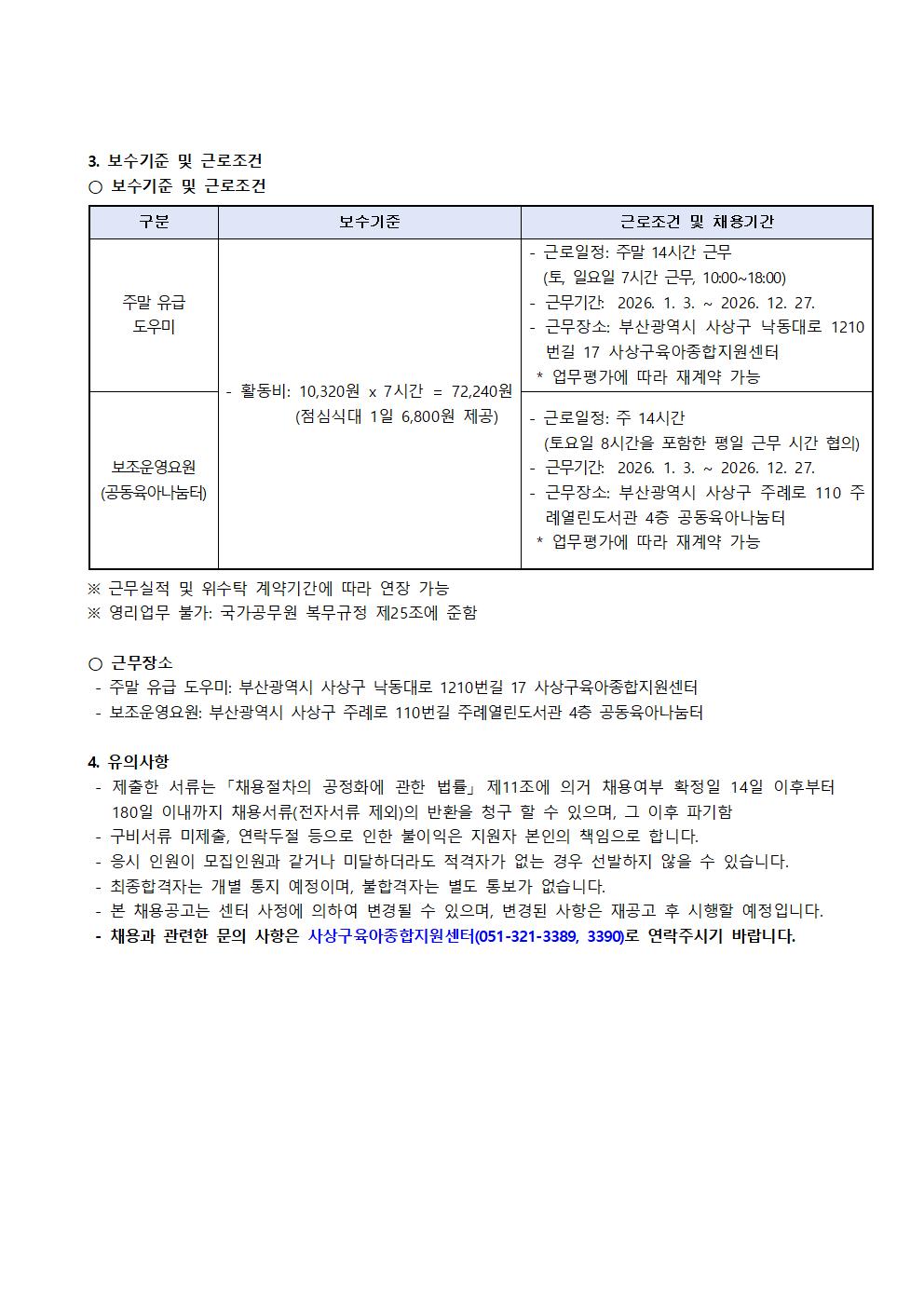 [»ç»ó±¸À°¾ÆÁ¾ÇÕÁö¿ø¼¾ÅÍ]ÁÖ¸»À¯±Þµµ¿ì¹Ì, °øµ¿À°¾Æ³ª´®ÅÍ º¸Á¶¿î¿µ¿ä¿ø ä¿ë °ø°í