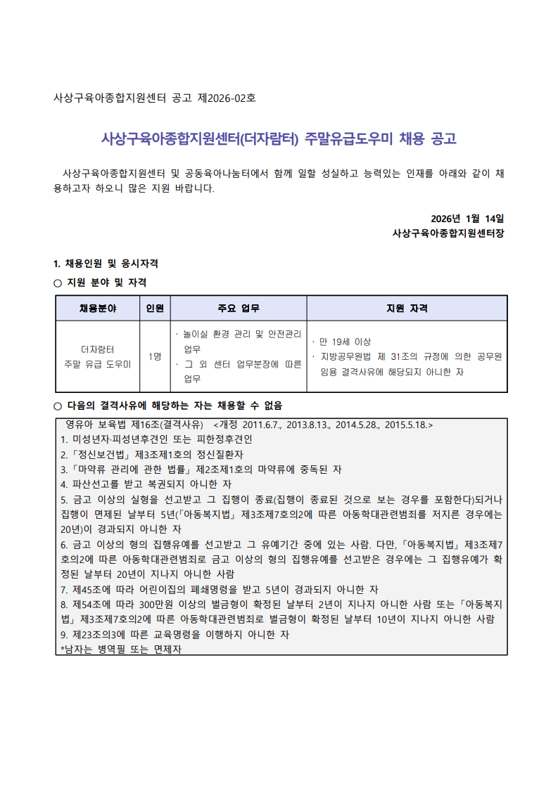 [»ç»ó±¸À°¾ÆÁ¾ÇÕÁö¿ø¼¾ÅÍ]ºÐ¼Ò(´õÀÚ¶÷ÅÍ) ÁÖ¸»À¯±Þµµ¿ì¹Ì ä¿ë °ø°í