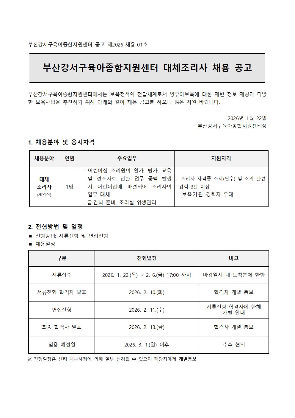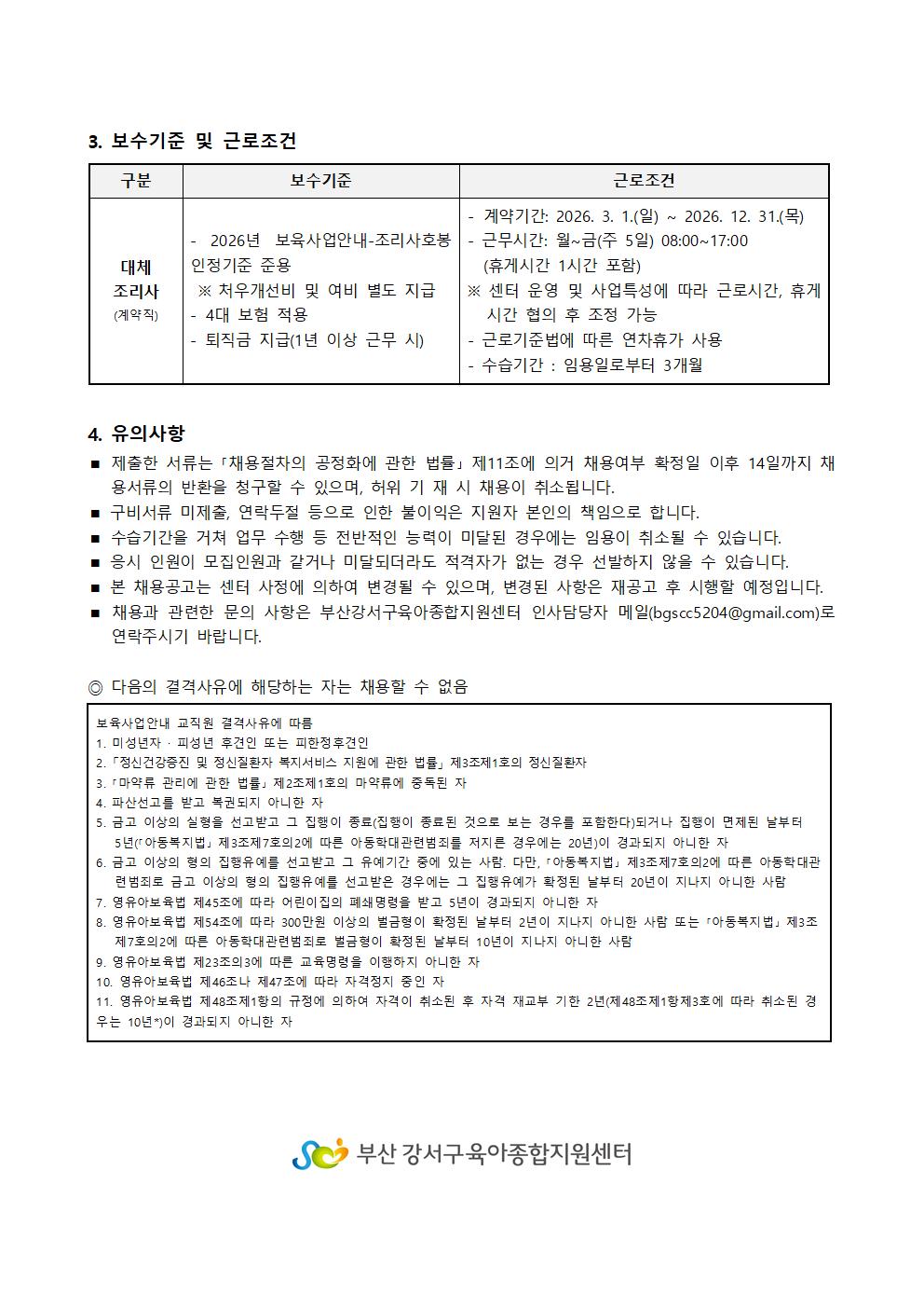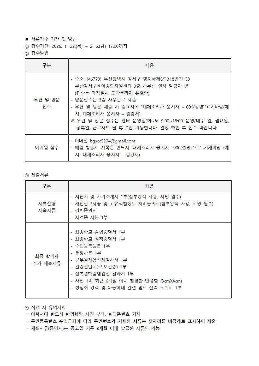 [ºÎ»ê°¼±¸À°¾ÆÁ¾ÇÕÁö¿ø¼¾ÅÍ] ½Å±ÔÁ÷¿ø(´ëüÁ¶¸®»ç) ä¿ë °ø°í