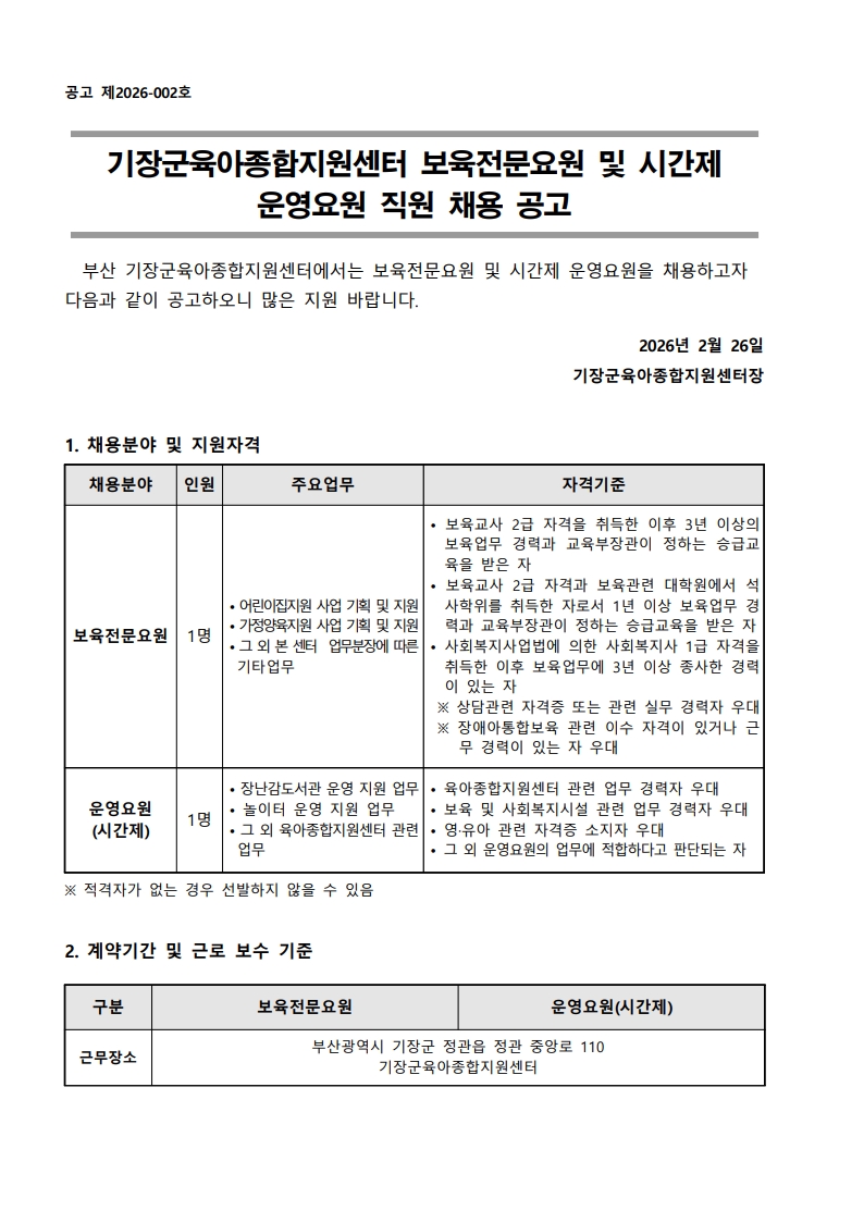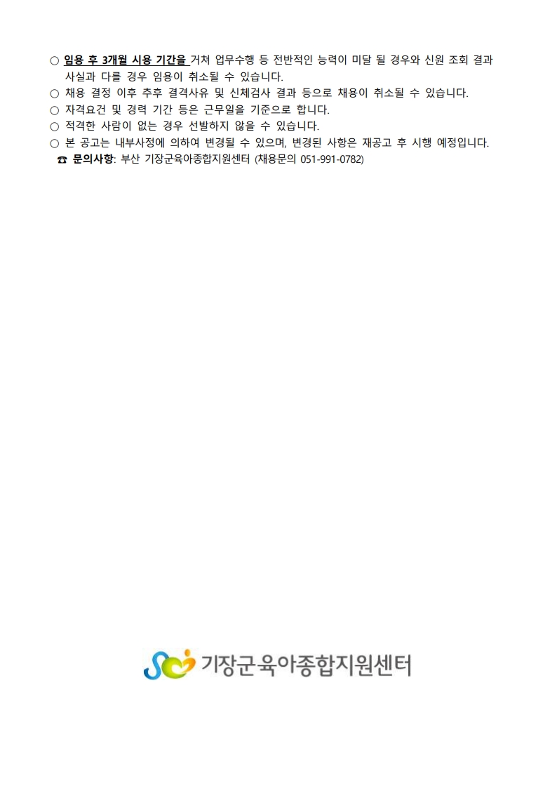 [±âÀ屺À°¾ÆÁ¾ÇÕÁö¿ø¼¾ÅÍ] º¸À°Àü¹®¿ä¿ø ¹× ¿î¿µ¿ä¿ø(½Ã°£Á¦) ä¿ë °ø°í