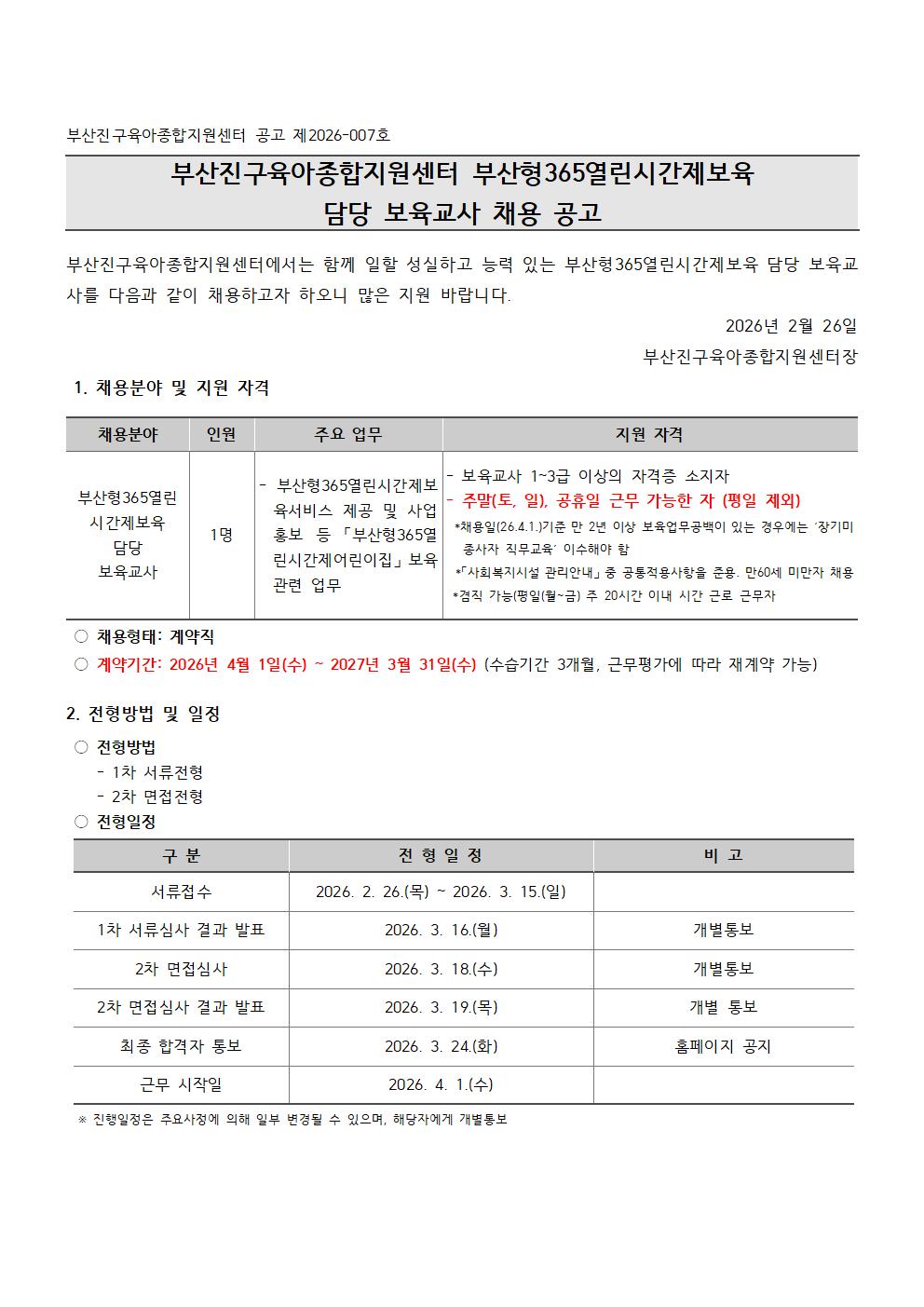 [ºÎ»êÁø±¸À°¾ÆÁ¾ÇÕÁö¿ø¼¾ÅÍ] ºÎ»êÁø±¸À°¾ÆÁ¾ÇÕÁö¿ø¼¾ÅÍ Á÷¿ø ä¿ë °ø°í