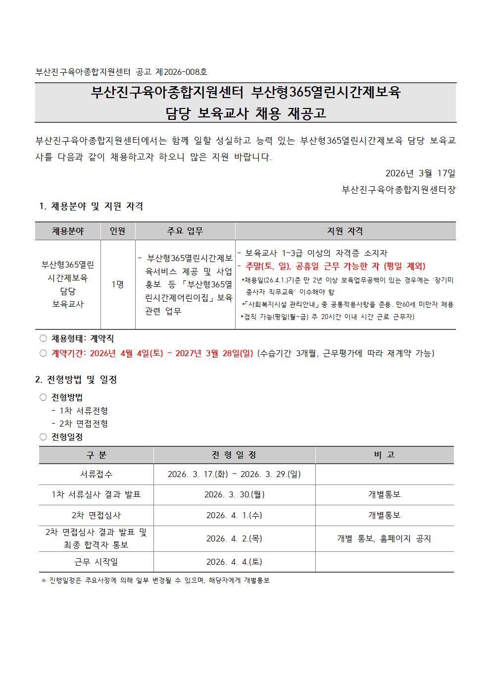 [ºÎ»êÁø±¸À°¾ÆÁ¾ÇÕÁö¿ø¼¾ÅÍ] Á÷¿ø(ºÎ»êÇü365¿¸°½Ã°£Á¦º¸À° ´ã´ç º¸À°±³»ç) ä¿ë °ø°í