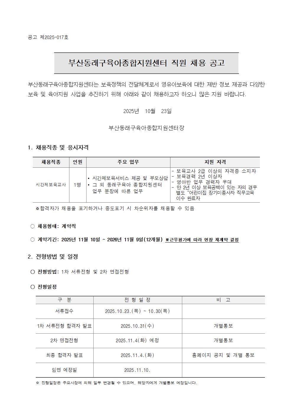 [µ¿·¡±¸À°¾ÆÁ¾ÇÕÁö¿ø¼¾ÅÍ] Á÷¿ø(½Ã°£Á¦º¸À°±³»ç) ä¿ë °ø°í