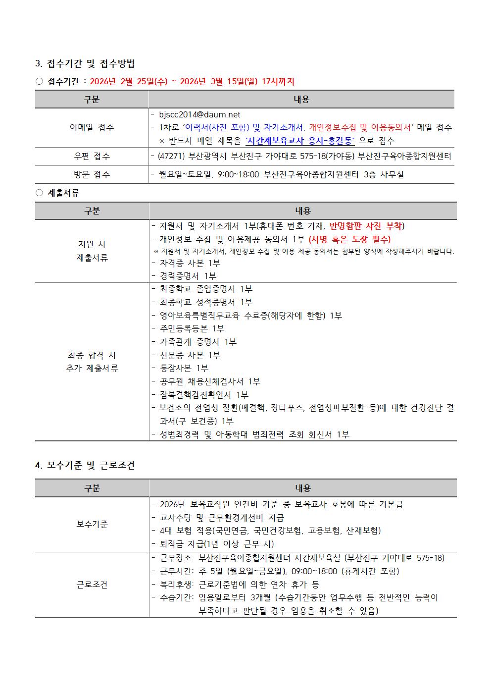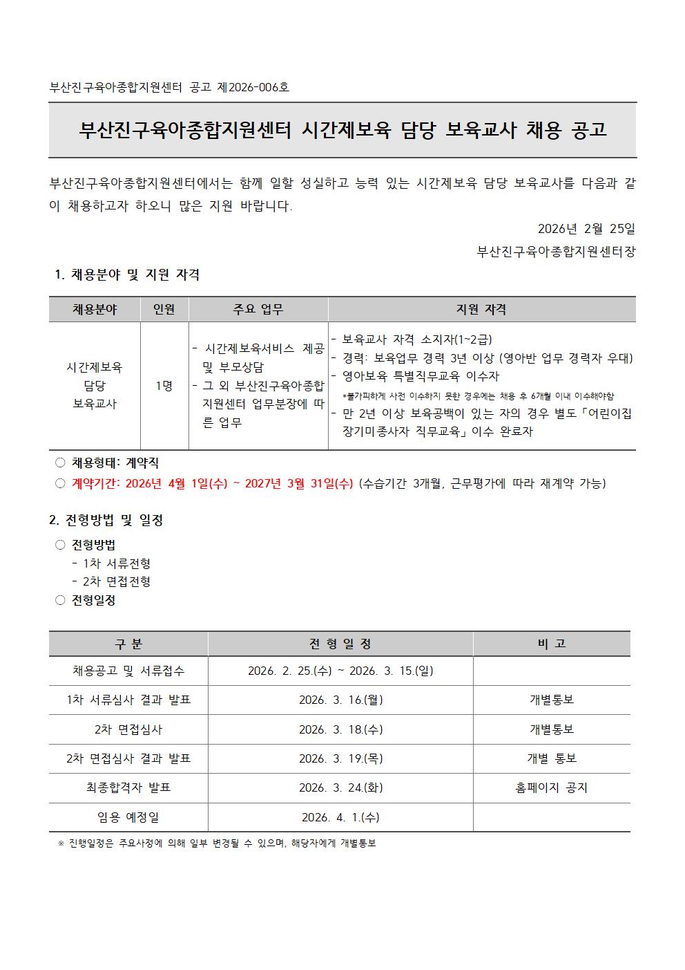 [ºÎ»êÁø±¸À°¾ÆÁ¾ÇÕÁö¿ø¼¾ÅÍ] Á÷¿ø(½Ã°£Á¦º¸À°±³»ç) ä¿ë °ø°í