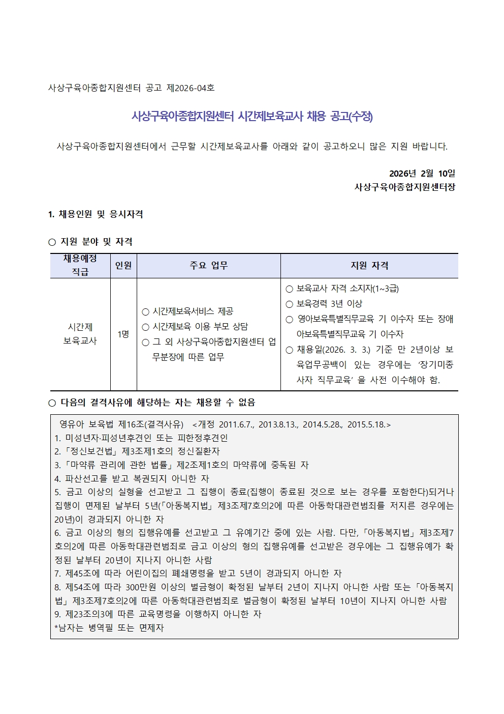 [»ç»ó±¸À°¾ÆÁ¾ÇÕÁö¿ø¼¾ÅÍ]½Ã°£Á¦º¸À°±³»ç ä¿ë Àç°ø°í