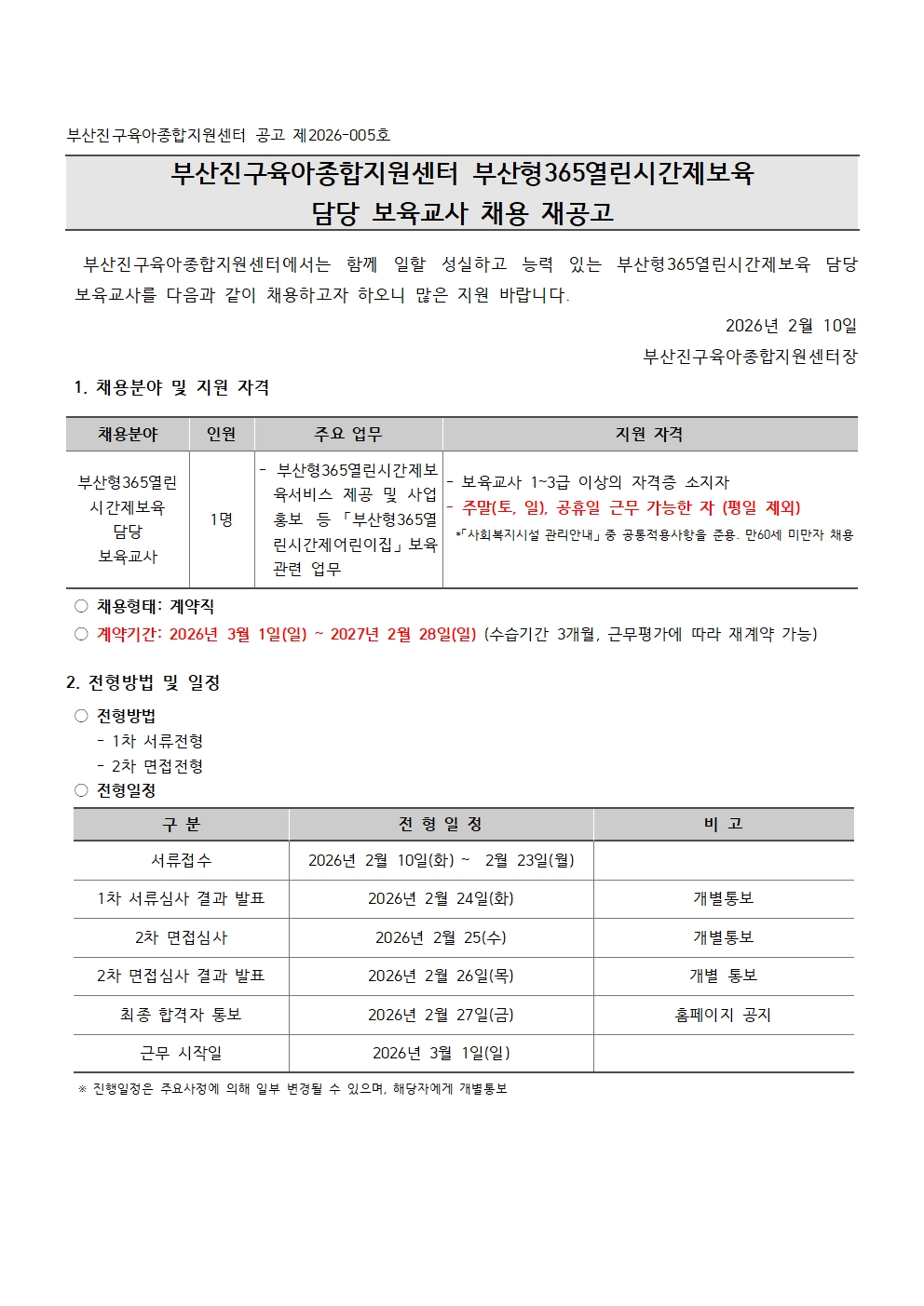 [ºÎ»êÁø±¸À°¾ÆÁ¾ÇÕÁö¿ø¼¾ÅÍ] Á÷¿ø ä¿ë °ø°í