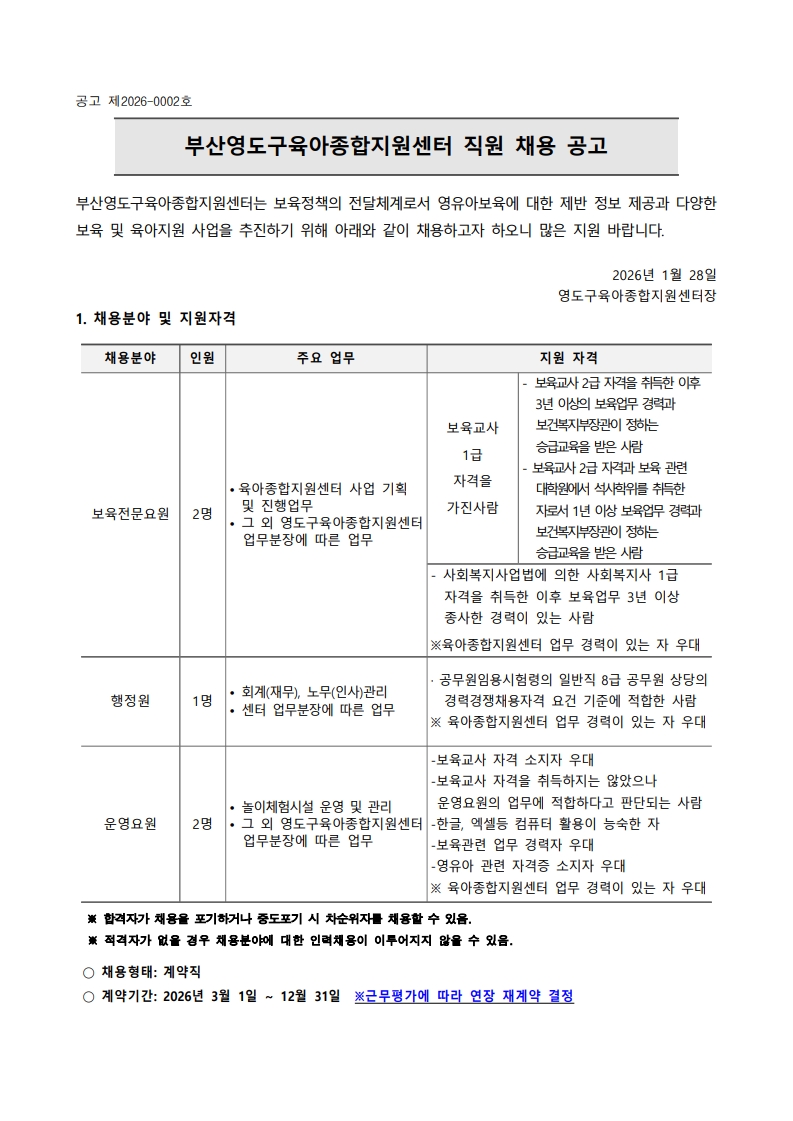 [¿µµµ±¸À°¾ÆÁ¾ÇÕÁö¿ø¼¾ÅÍ] Á÷¿ø °ø°³Ã¤¿ë °ø°í