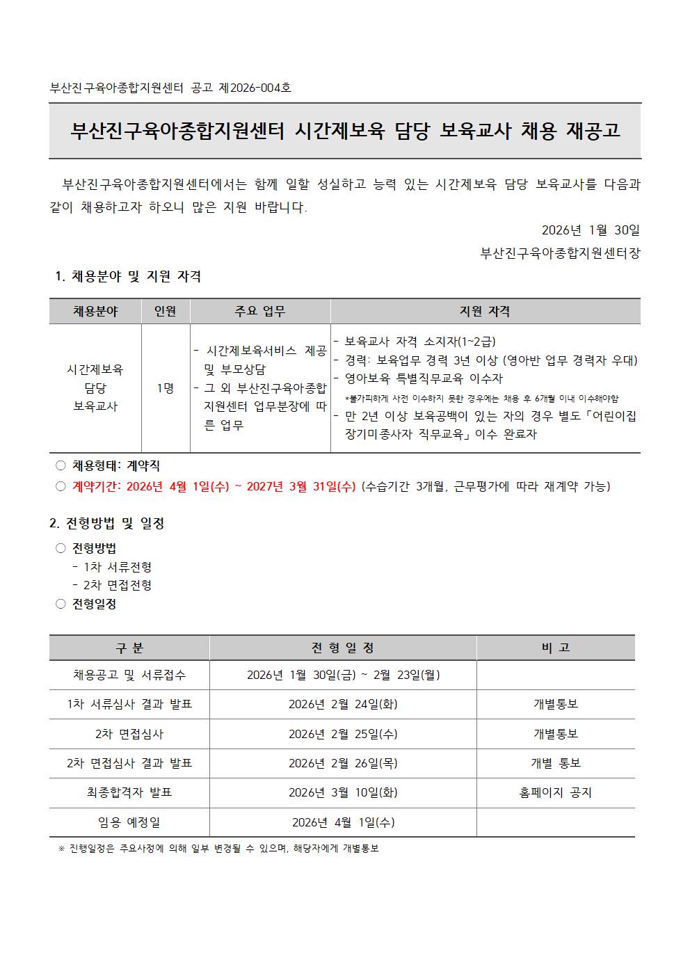 [ºÎ»êÁø±¸À°¾ÆÁ¾ÇÕÁö¿ø¼¾ÅÍ] ½Ã°£Á¦º¸À° ´ã´ç º¸À°±³»ç ä¿ë Àç°ø°í