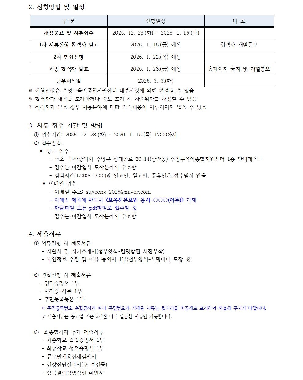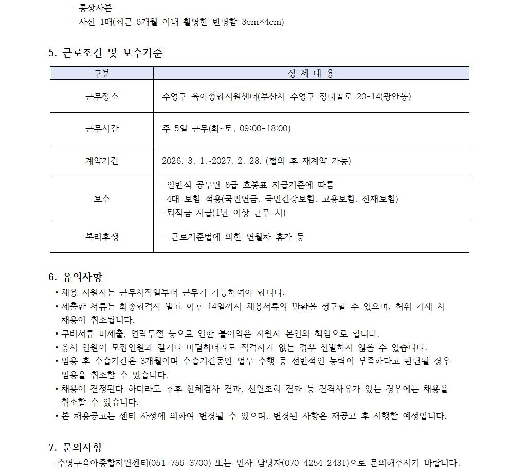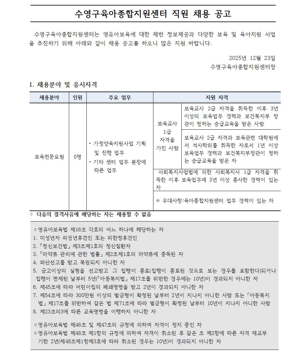[°ø°í] ¼ö¿µ±¸ À°¾ÆÁ¾ÇÕÁö¿ø¼¾ÅÍ Á÷¿ø(º¸À°Àü¹®¿ä¿ø) ä¿ë
