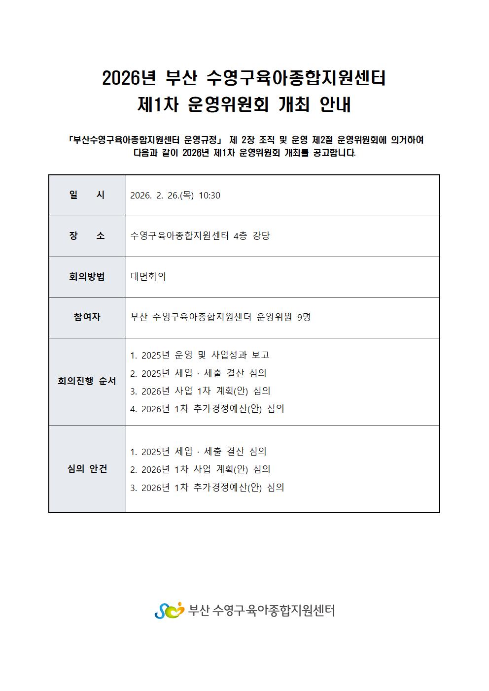 [°ø°í] 2026³â Á¦1Â÷ ¿î¿µÀ§¿øÈ¸ °³ÃÖ