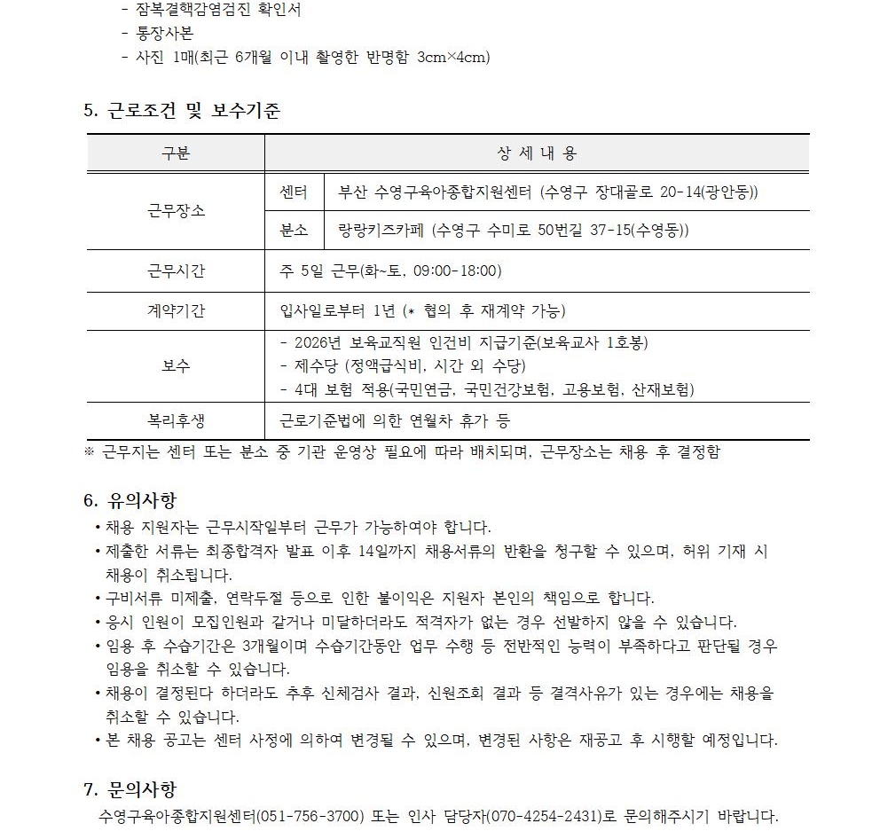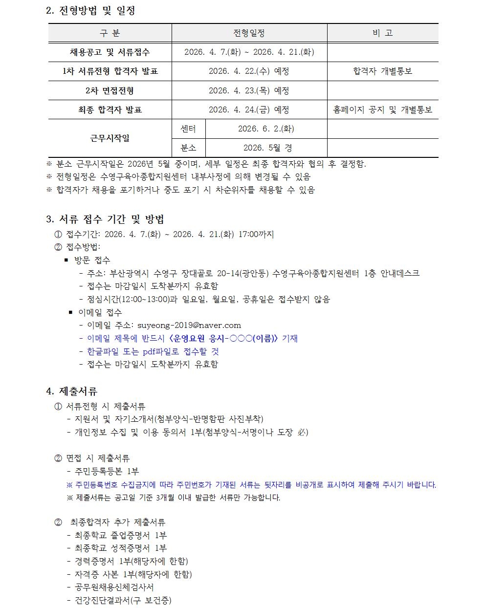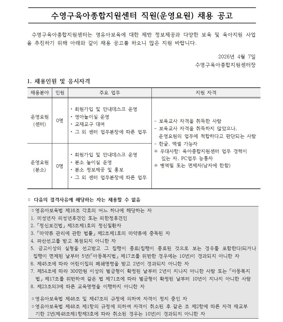 [°ø°í] ¼ö¿µ±¸À°¾ÆÁ¾ÇÕÁö¿ø¼¾ÅÍ Á÷¿ø(¿î¿µ¿ä¿ø) ä¿ë °ø°í