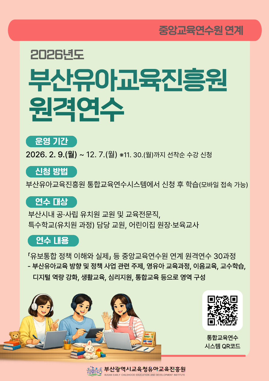 [ºÎ»ê±¤¿ª½Ã±³À°Ã»À¯¾Æ±³À°ÁøÈï¿ø] 2026³â ºÎ»êÀ¯¾Æ±³À°ÁøÈï¿ø ¿ø°Ý¿¬¼ö ¾È³»