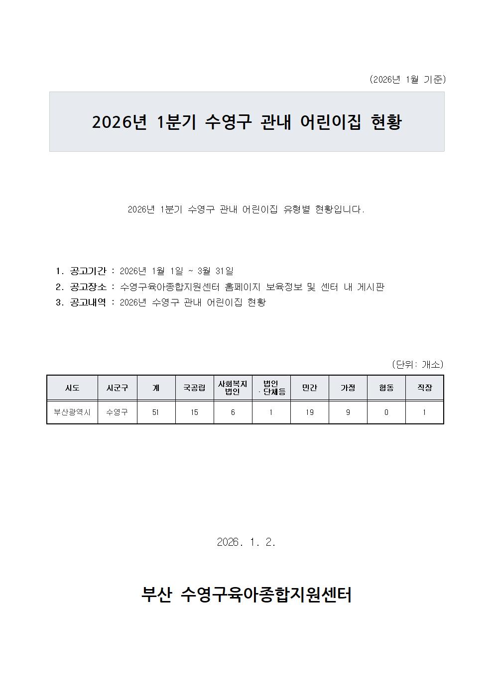 2026³â 1ºÐ±â ¼ö¿µ±¸ °ü³» ¾î¸°ÀÌÁý ÇöȲ