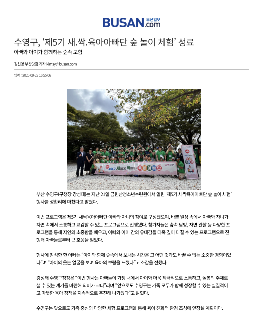 [ºÎ»êÀϺ¸] ¼ö¿µ±¸, ¡®Á¦5±â »õ.½Ï.À°¾Æ¾Æºü´Ü ½£ ³îÀÌ Ã¼Ç衯 ¼º·á
