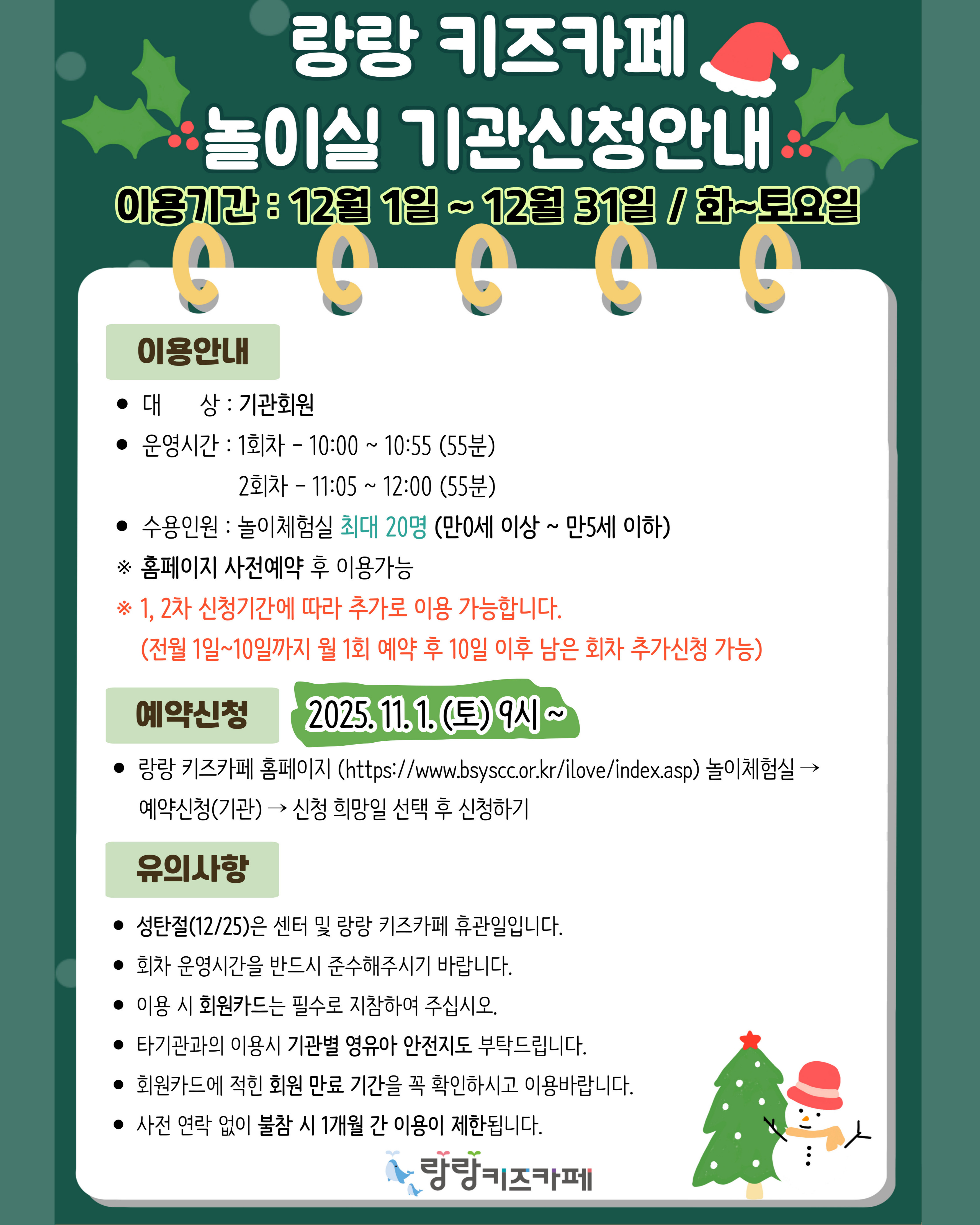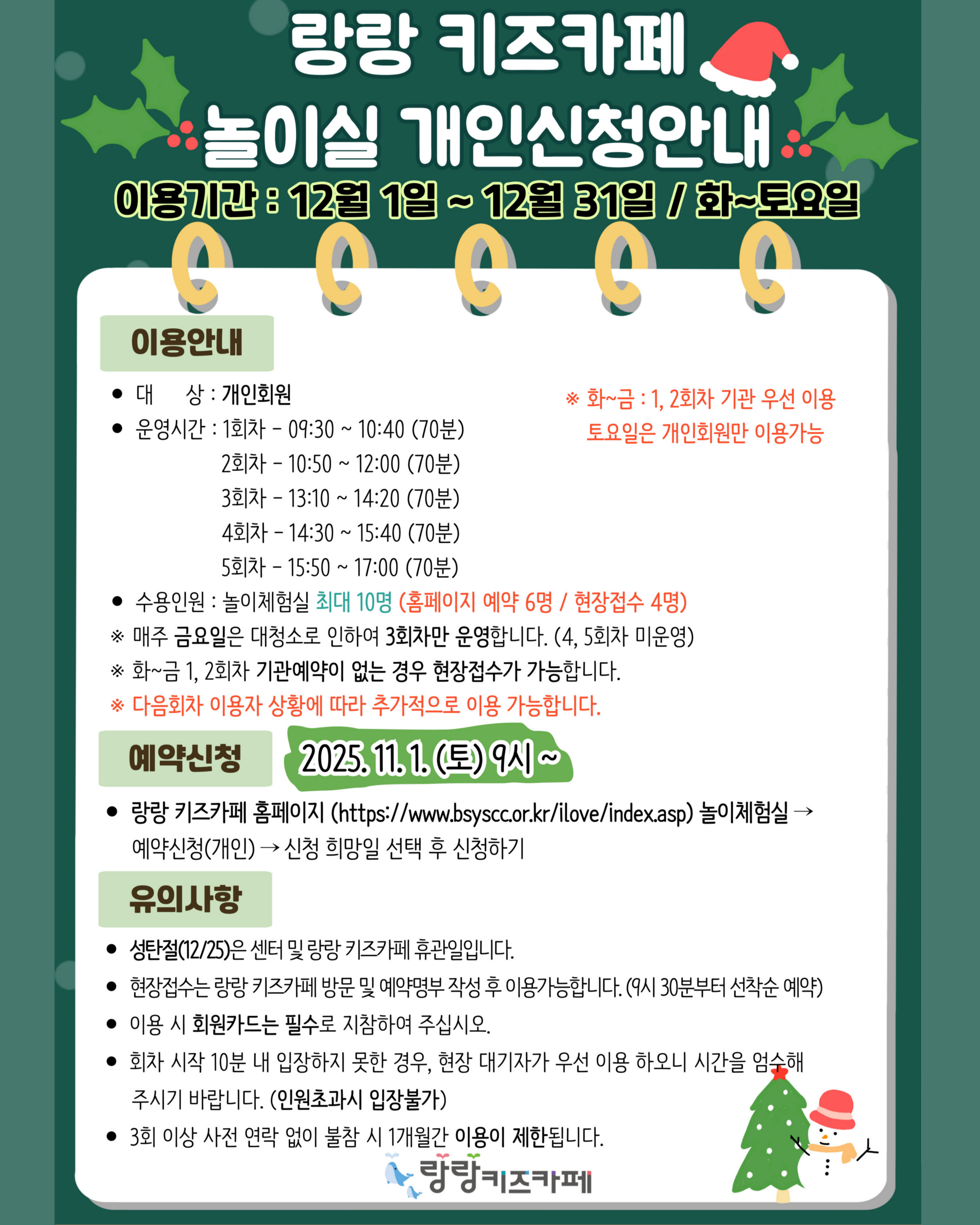 ![]() 12¿ù ³îÀÌ½Ç ÀÌ¿ë¾È³»ÀÔ´Ï´Ù.