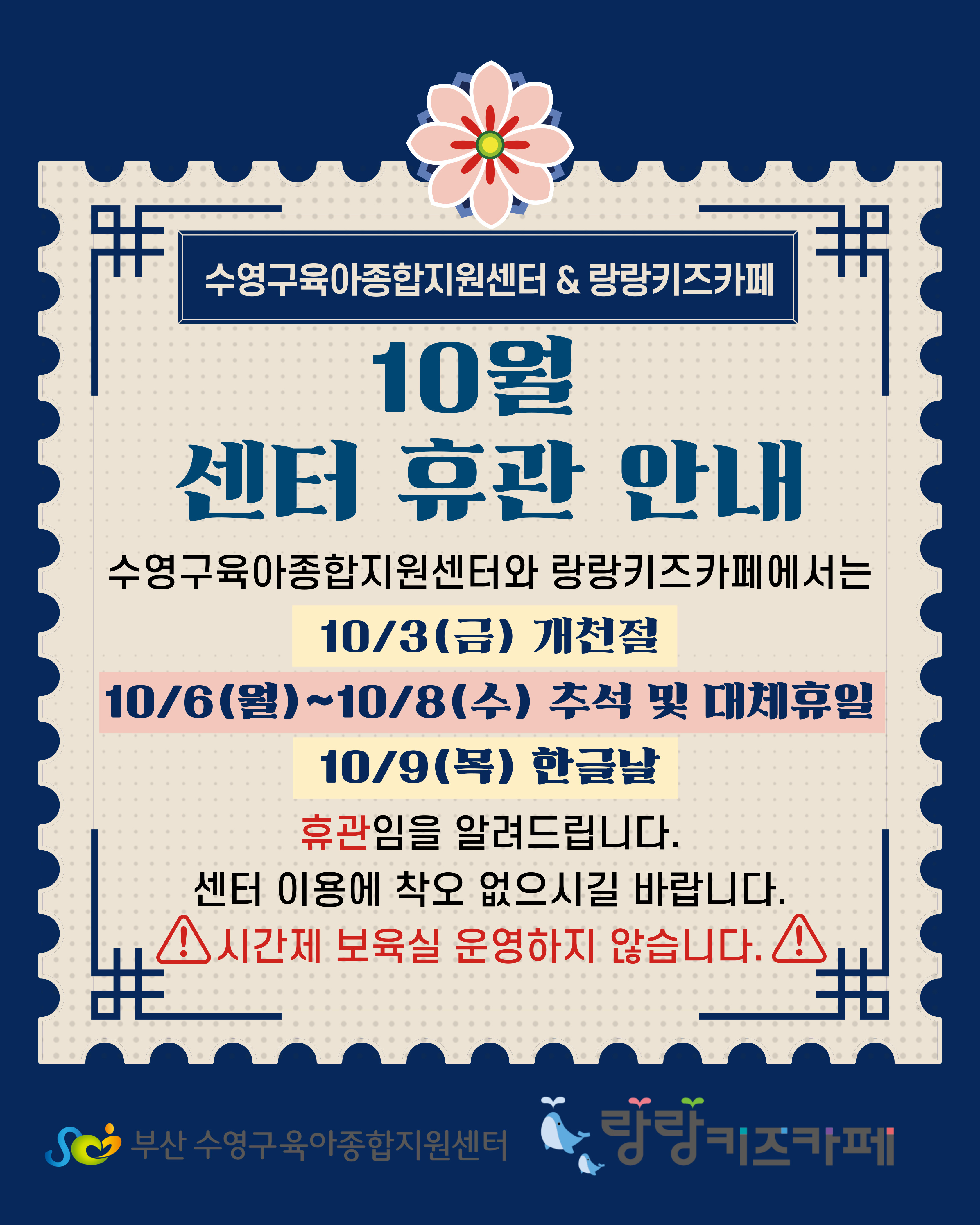 [¼ö¿µ±¸À°¾ÆÁ¾ÇÕÁö¿ø¼¾ÅÍ&¶û¶û ŰÁîÄ«Æä] 10¿ù ÈÞ°ü¾È³» | |||||