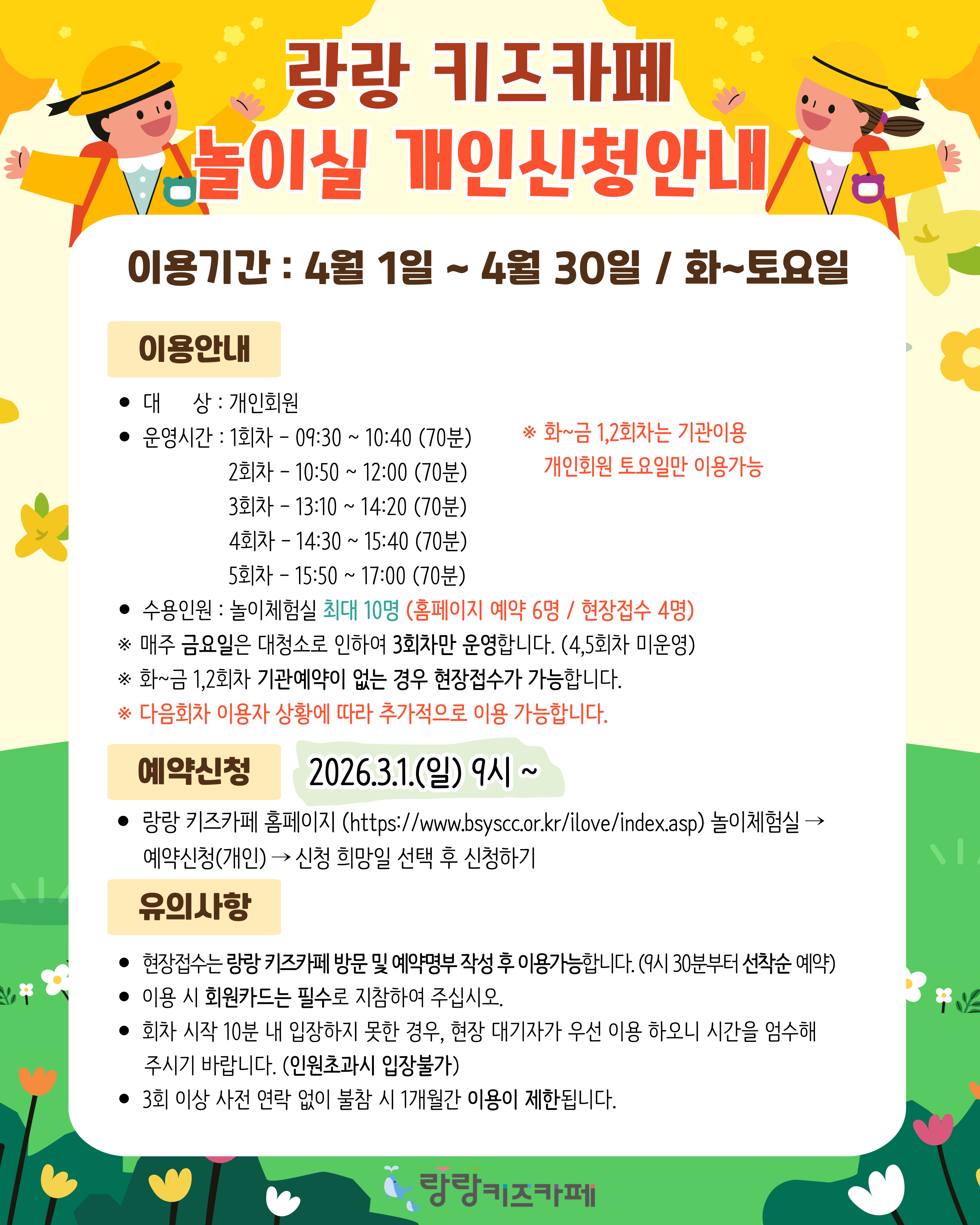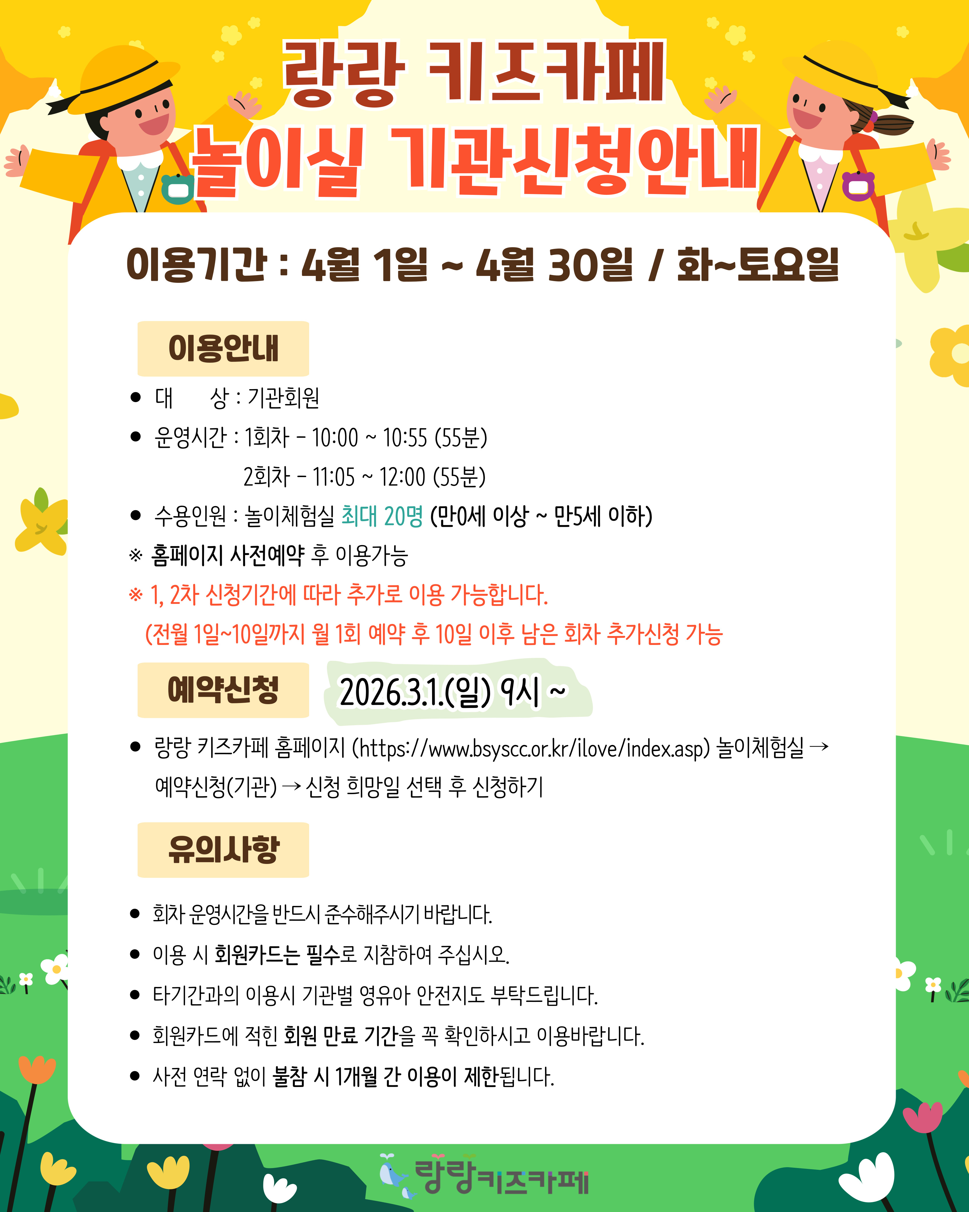![]() 4¿ù ³îÀÌ½Ç ÀÌ¿ë¾È³»ÀÔ´Ï´Ù.