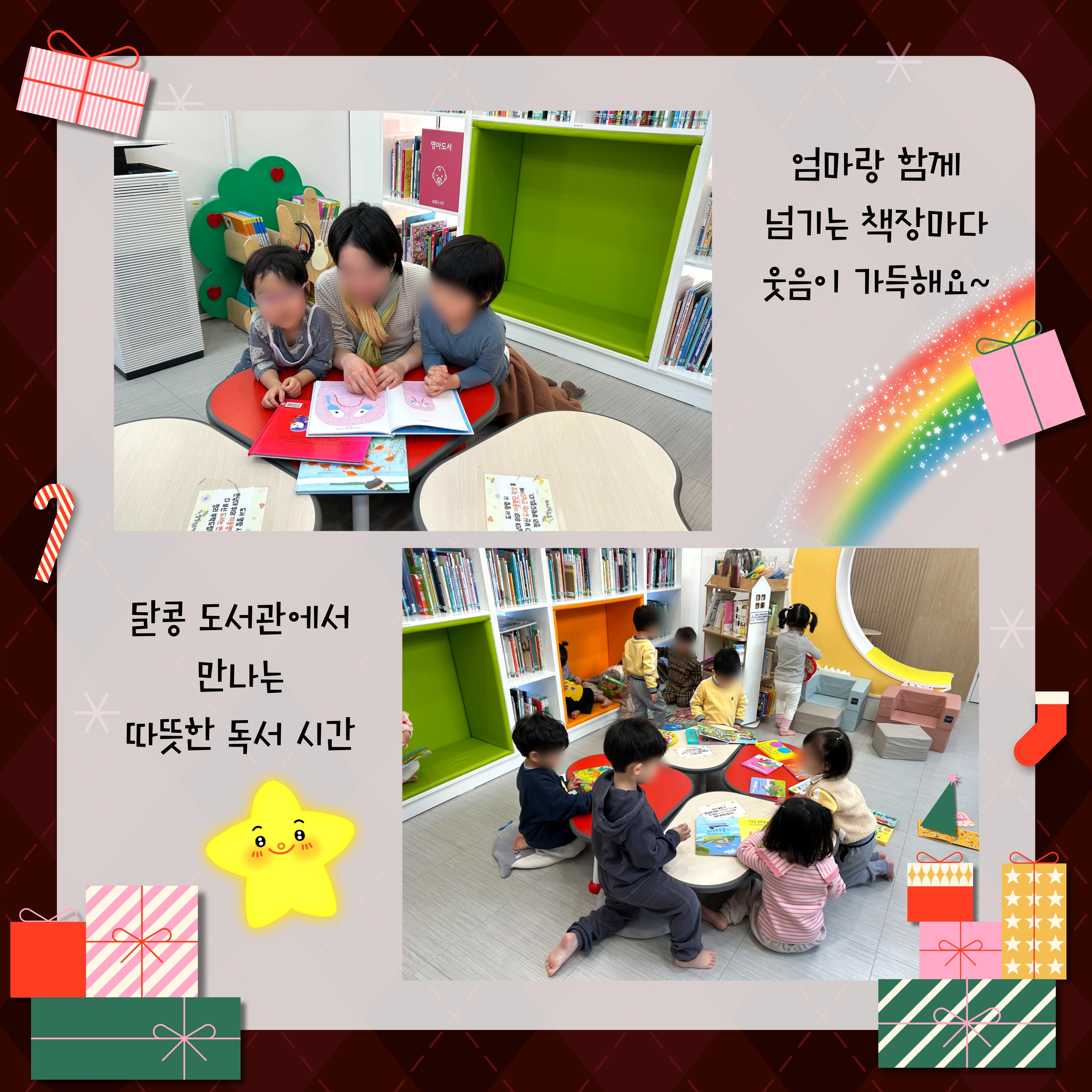 ¸Å¼¿î ÃßÀ§ ¼Ó¿¡¼µµ Æ÷±ÙÇÑ ¿Â±â°¡ ±×¸®¿öÁö´Â ¿äÁò, µû¶æÇÑ ½Ç³»¿¡¼ ¾ÆÀ̵éÀÇ ¿ôÀ½¼Ò¸®°¡ ´õ¿í ¹Ý°©°Ô ´À²¸Áý´Ï´Ù. :) ¶û¶û ŰÁîÄ«Æä¿¡¼ ¿ôÀ½°ú ÇູÀ¸·Î °¡µæÇÑ ÇÏ·ç º¸³»¼¼¿ä! |