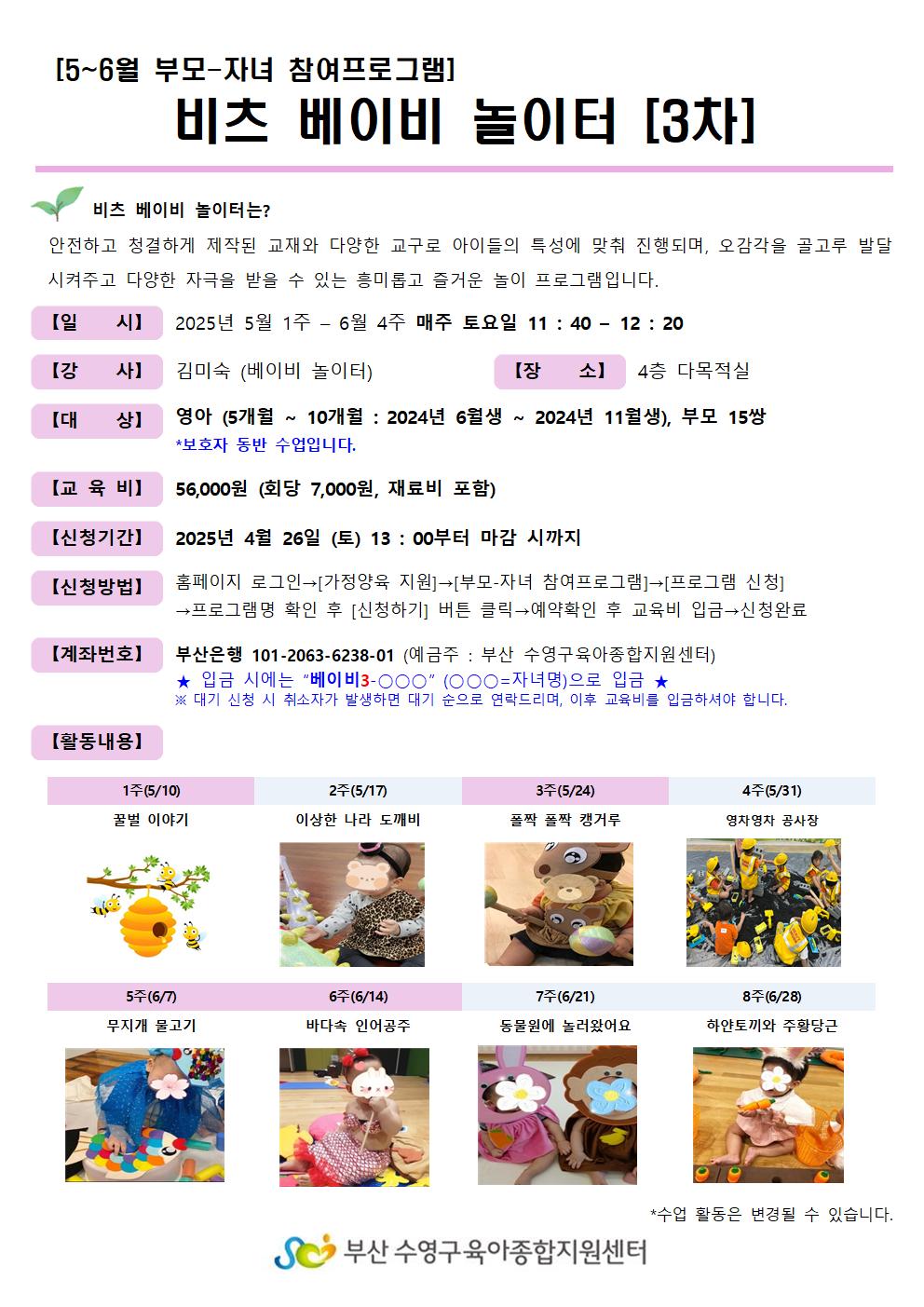 | À¯ÀÇ»çÇ× | - °èÁ¹øÈ£ ¹× ÀÔ±ÝÀÚ¸íÀ» ²À È®ÀÎÇϽðí ÀÔ±Ý ºÎʵ右´Ï´Ù. - ¼¾ÅÍ È¨ÆäÀÌÁöÀÇ ºÎ¸ð-ÀÚ³à Âü¿©ÇÁ·Î±×·¥ ÀÌ¿ë¾È³»¿¡ ±âÀçµÇ¾î Àִ ȯºÒ ±ÔÁ¤¿¡ µû¶ó ȯºÒ ÁøÇàµË´Ï´Ù. - ºÎ¸ð-ÀÚ³à üÇèÇÁ·Î±×·¥ ÀÌ¿ë ½Ã ¹Ýµå½Ã ȸ¿øÄ«µå¸¦ ÁöÂüÇÏ¿©¾ß ÇÕ´Ï´Ù. - ÇÁ·Î±×·¥ ½Åû ÈÄ 3ÀÏ À̳» ±³À°ºñ°¡ ÀԱݵÇÁö ¾ÊÀ¸¸é Ãß°¡ ¾È³» ¾øÀÌ ÀÚµ¿À¸·Î Ãë¼ÒµË´Ï´Ù. - ½Åû Ãë¼ÒÀÚ ¹ß»ý ½Ã ´ë±â ¼ø¹ø´ë·Î ¿¬¶ôµå¸³´Ï´Ù. ½Åû ó¸® ¿Ï·á ¿¬¶ôÀ» ¹ÞÀ¸½Å ÈÄ¿¡ ÀÔ±Ý ºÎʵ右´Ï´Ù. - ¼ö° °ú¸ñÀÇ Á¤¿øÀÌ 50% ¹Ì¸¸ÀÎ °æ¿ì ºÎµæÀÌÇÏ°Ô Æó°µÉ ¼ö ÀÖÀ¸¸ç, ÀÌ °æ¿ì Àü¾× ȯºÒ °¡´ÉÇÕ´Ï´Ù. - ÄèÀûÇÑ ³îÀÌȯ°æÀ» Á¦°øÇϰíÀÚ ¹°À» Æ÷ÇÔÇÑ À½½Ä¹° ¹ÝÀÔÀ» ±ÝÁöÇÕ´Ï´Ù. - ÇÁ·Î±×·¥½Ç, ´Ù¸ñÀû½Ç ³»¿¡¼ ÀϾ´Â ¾ÈÀü»ç°íÀÇ ¸ðµç Ã¥ÀÓÀº º¸È£ÀÚ¿¡°Ô ÀÖÀ¸¹Ç·Î ¾ÈÀü¿¡ ÁÖÀÇÇØÁֽñ⠹ٶø´Ï´Ù. - ¹ýÁ¤ °¨¿°º´ÀÏ °æ¿ì¿¡´Â ÀÌ¿ëÀÌ Á¦Çѵ˴ϴÙ. |