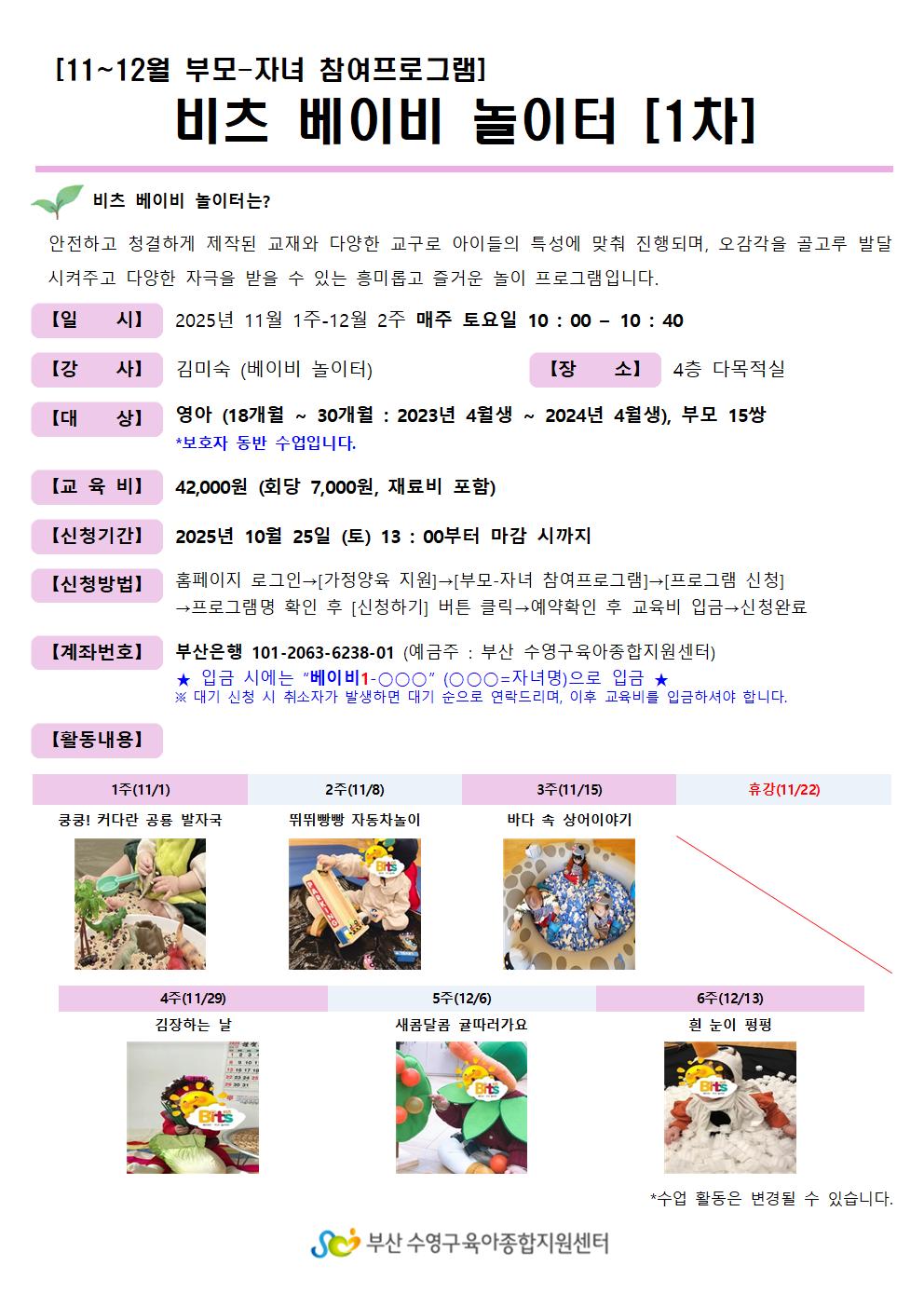 | ÇÁ·Î±×·¥ ÀϽà | 2025-11-01(Åä) ~ 2025-12-13(Åä) ¸ÅÁÖ Åä¿äÀÏ, ÃÑ 6ÁÖ | ||