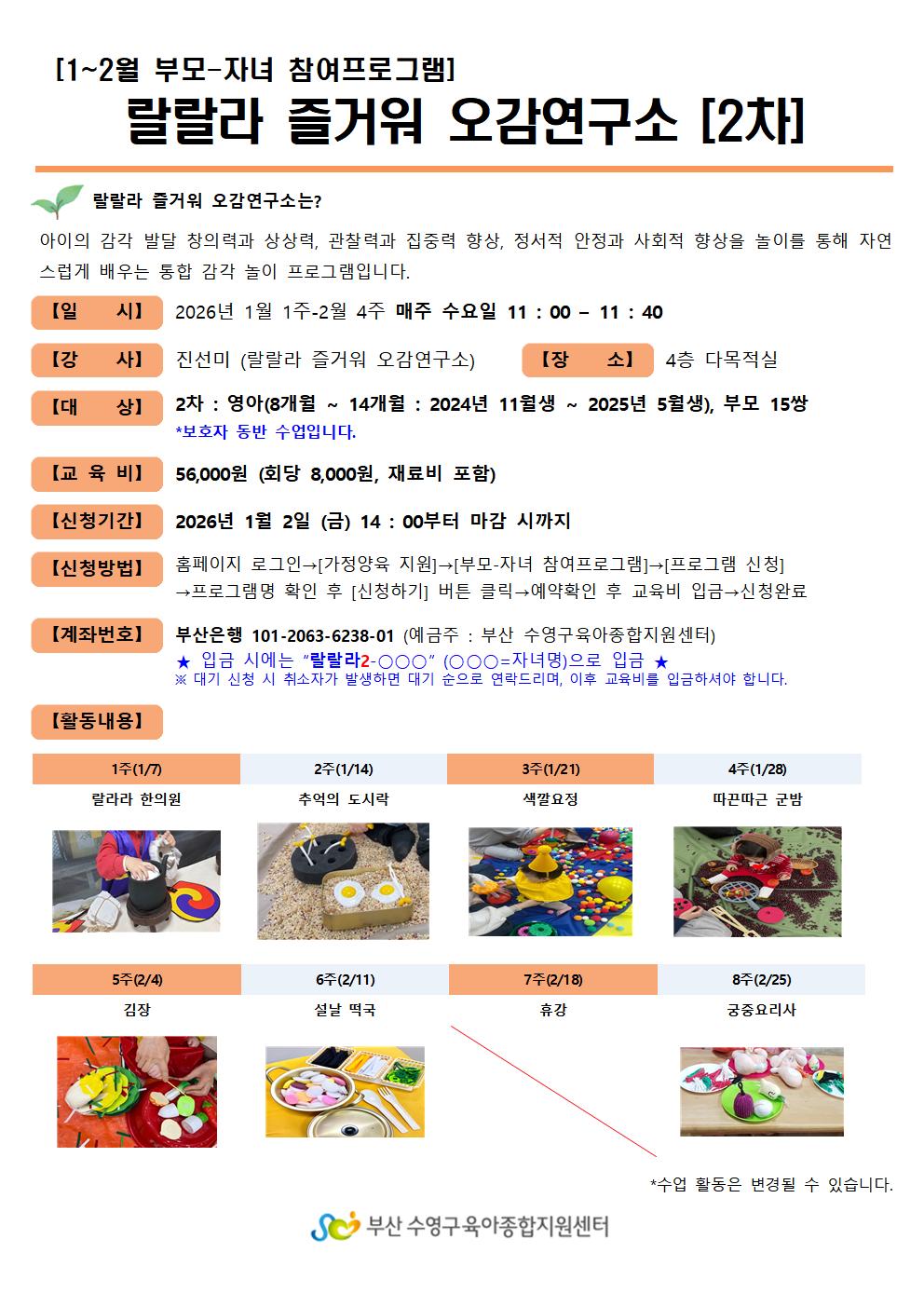 | ÇÁ·Î±×·¥ ÀϽà | 2026-01-07(¼ö) 11½Ã00ºÐ ~ 2026-02-25(¼ö) 11½Ã40ºÐ ¸ÅÁÖ ¼ö¿äÀÏ, ÃÑ 7ÁÖ | ||
