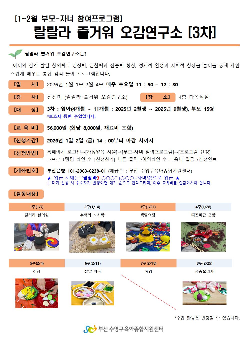 | ÇÁ·Î±×·¥ ÀϽà | 2026-01-07(¼ö) 11½Ã50ºÐ ~ 2026-02-25(¼ö) 12½Ã30ºÐ ¸ÅÁÖ ¼ö¿äÀÏ, ÃÑ 7ÁÖ | ||
