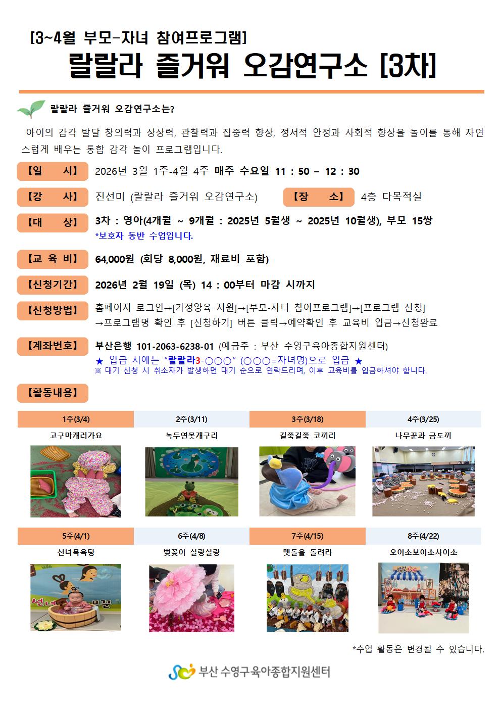 | ÇÁ·Î±×·¥ ÀϽà | 2026-03-04(¼ö) 11½Ã50ºÐ ~ 2026-04-22(¼ö) 12½Ã30ºÐ ¸ÅÁÖ ¼ö¿äÀÏ, ÃÑ 8ÁÖ | ||