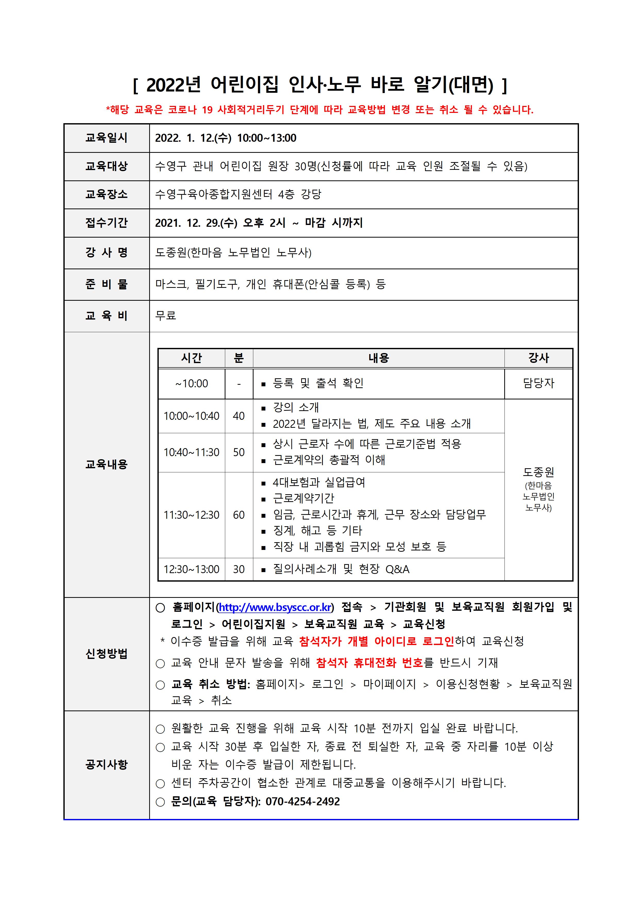 | ½Åû±â°£ | 2021-12-29(¼ö) 14½Ã ~ ¸¶°¨ ½Ã±îÁö (¼ö¿µ±¸ °ü³» ¾î¸°ÀÌÁý ¿øÀå) | ||