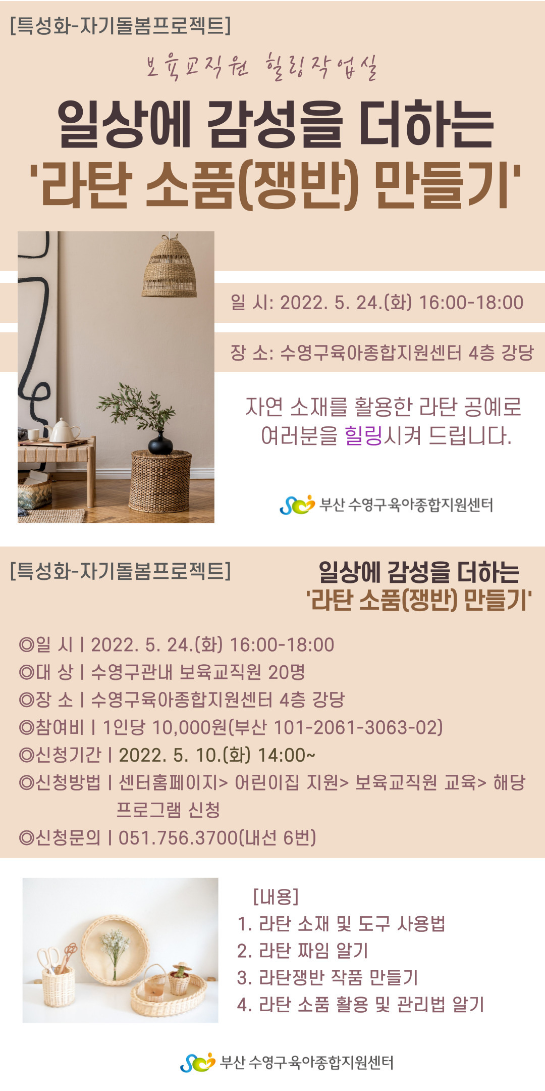 | ½Åû±â°£ | 2022-05-10(È) 14½Ã ~ ¸¶°¨ ½Ã±îÁö (¼ö¿µ±¸ °ü³» ¾î¸°ÀÌÁý º¸À°±³Á÷¿ø ) | ||