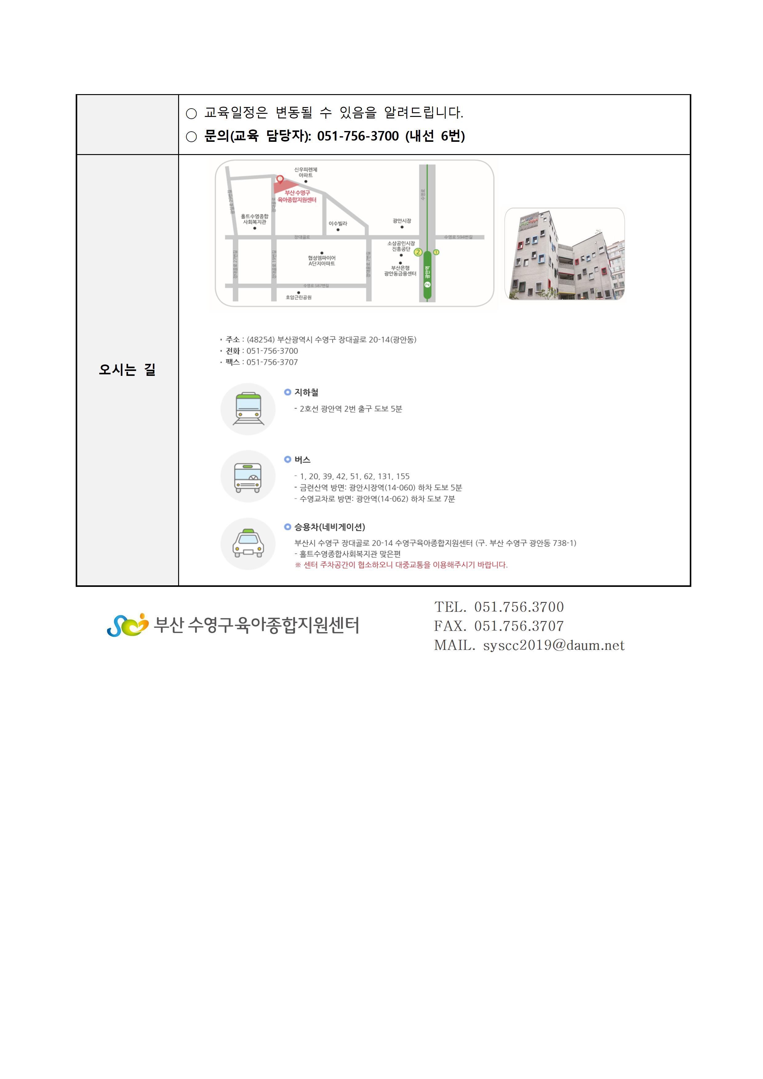 | Á¢¼ö´ë»ó | ¼ö¿µ±¸ °ü³» ¾î¸°ÀÌÁý º¸À°±³Á÷¿ø | Á¤¿ø | 20¸í (½Åû: 25) |