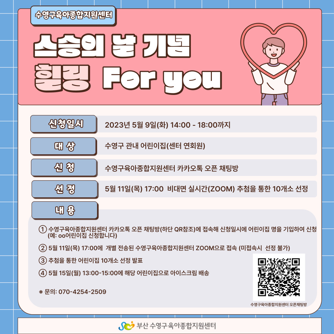 | ½Åû±â°£ | 2023-05-15(¿ù) 13½Ã ~ ¸¶°¨ ½Ã±îÁö (¼ö¿µ±¸ °ü³» ¾î¸°ÀÌÁý(¼¾ÅÍ ¿¬È¸¿ø)) | ||