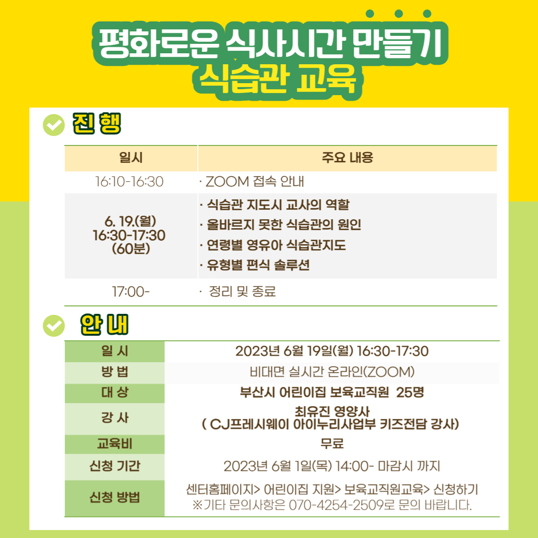| ½Åû±â°£ | 2023-06-01(¸ñ) 14½Ã ~ ¸¶°¨ ½Ã±îÁö (ºÎ»ê½Ã ¾î¸°ÀÌÁý º¸À°±³Á÷¿ø) | ||