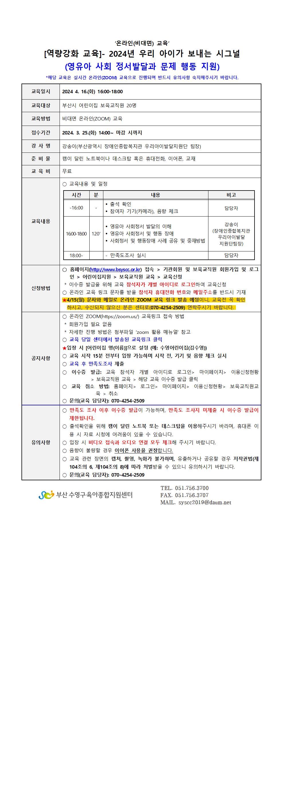 | ½Åû±â°£ | 2024-03-25(¿ù) 14½Ã ~ ¸¶°¨ ½Ã±îÁö (ºÎ»ê½Ã ¾î¸°ÀÌÁý º¸À°±³Á÷¿ø) | ||