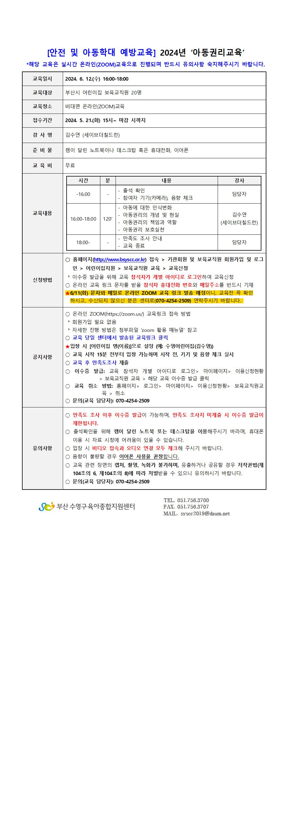 | ½Åû±â°£ | 2024-05-21(È) 15½Ã ~ ¸¶°¨ ½Ã±îÁö (ºÎ»ê½Ã ¾î¸°ÀÌÁý º¸À°±³Á÷¿ø) | ||