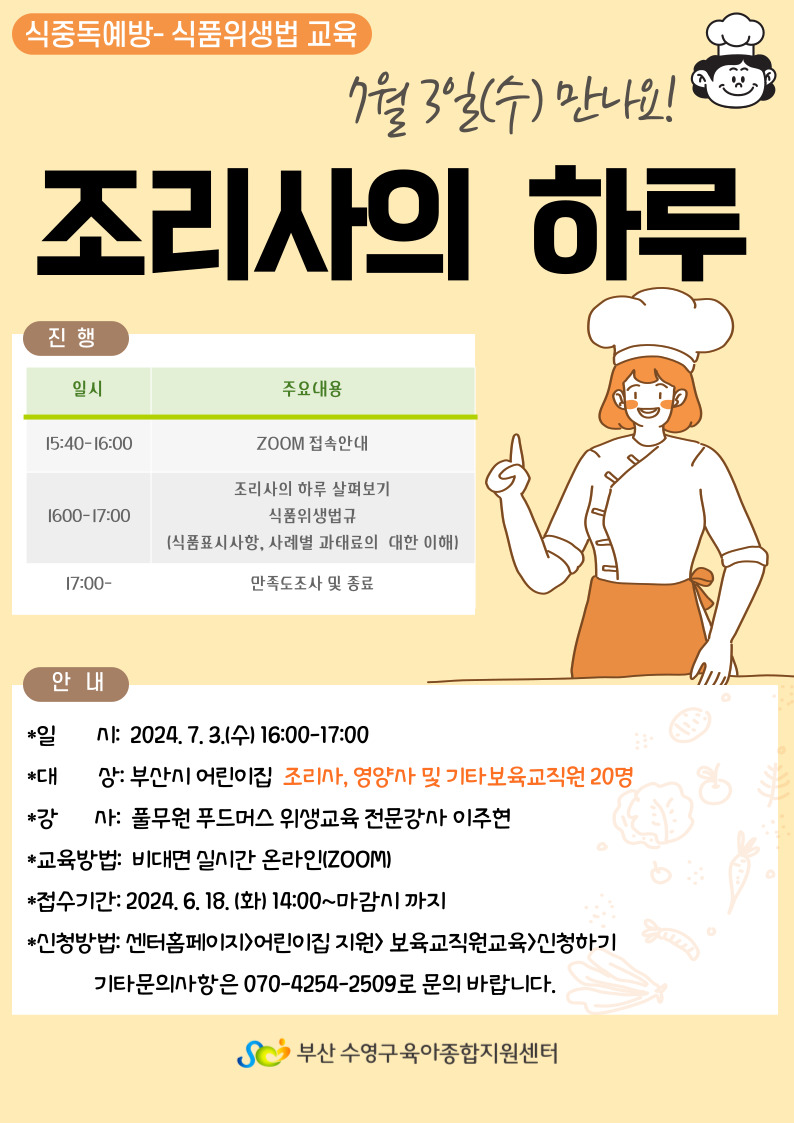 | 2024³â Á¶¸®»çÀÇ ÇÏ·ç(½ÄǰÀ§»ý¹ý ±³À°) | |||