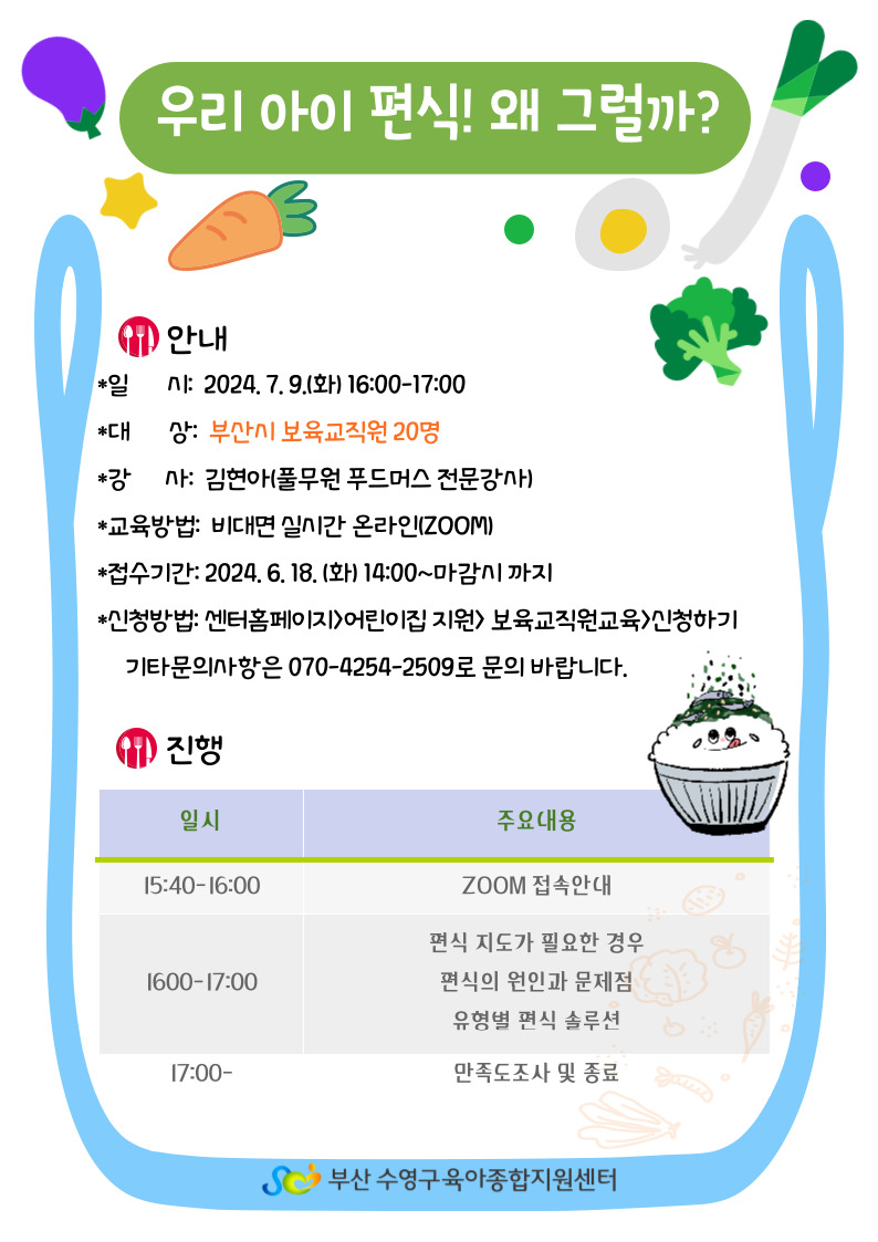 | ½Åû±â°£ | 2024-06-19(¼ö) 14½Ã ~ ¸¶°¨ ½Ã±îÁö (ºÎ»ê½Ã ¾î¸°ÀÌÁý º¸À°±³Á÷¿ø) | ||