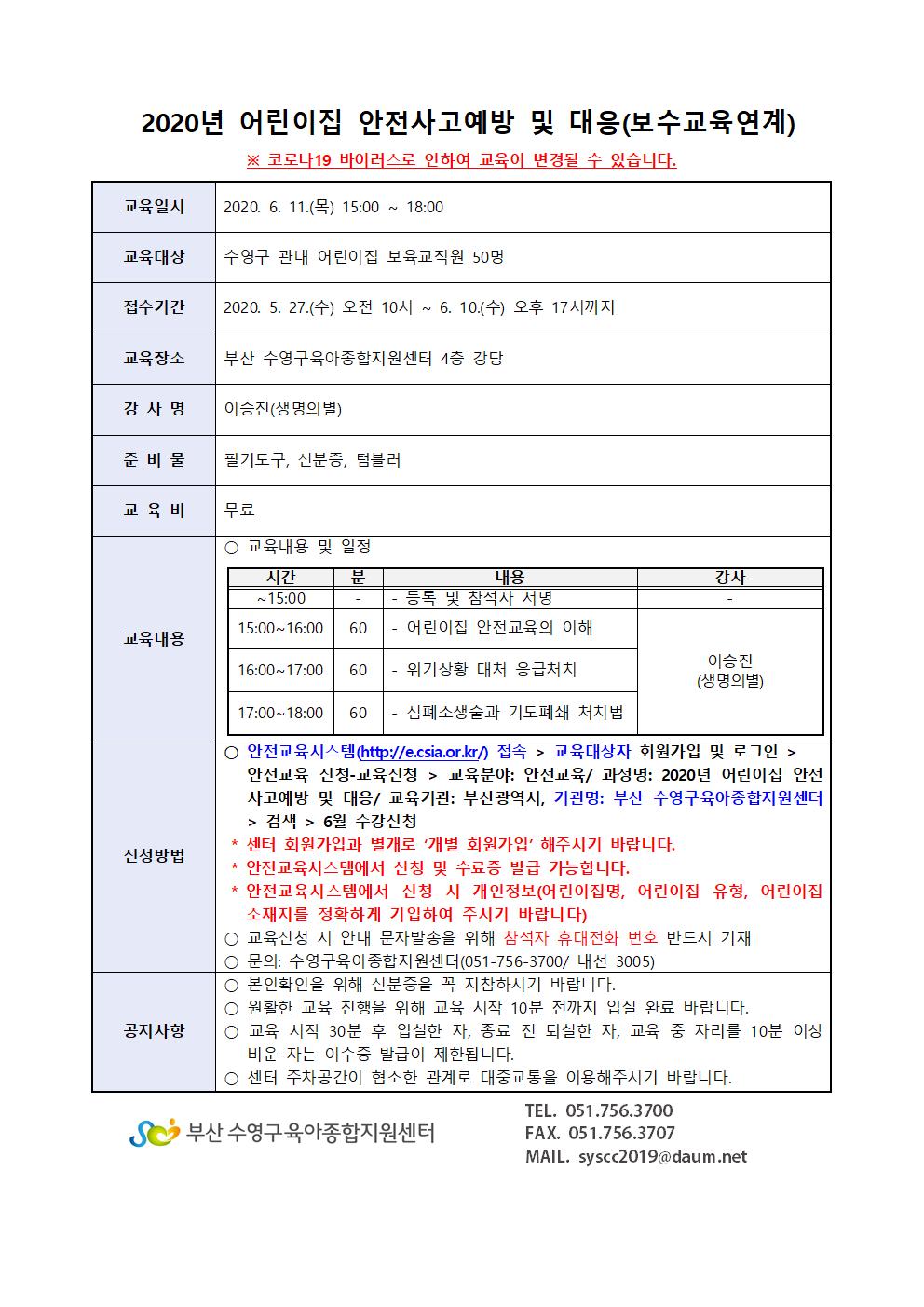 | 2020³â ¾î¸°ÀÌÁý ¾ÈÀü»ç°í¿¹¹æ ¹× ´ëÀÀ(º¸¼ö±³À°¿¬°è) | |||