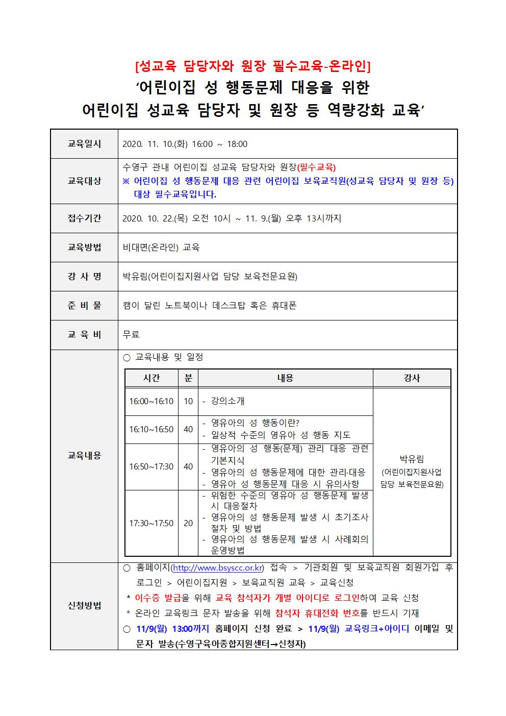| ¼º±³À° ´ã´çÀÚ¿Í ¿øÀå Çʼö±³À°-¿Â¶óÀÎ) ¾î¸°ÀÌÁý ¼º Çൿ¹®Á¦ ´ëÀÀÀ» À§ÇÑ ¾î¸°ÀÌÁý ¼º±³À° ´ã´çÀÚ ¹× ¿øÀå µî ¿ª·®°È ±³À° | |||