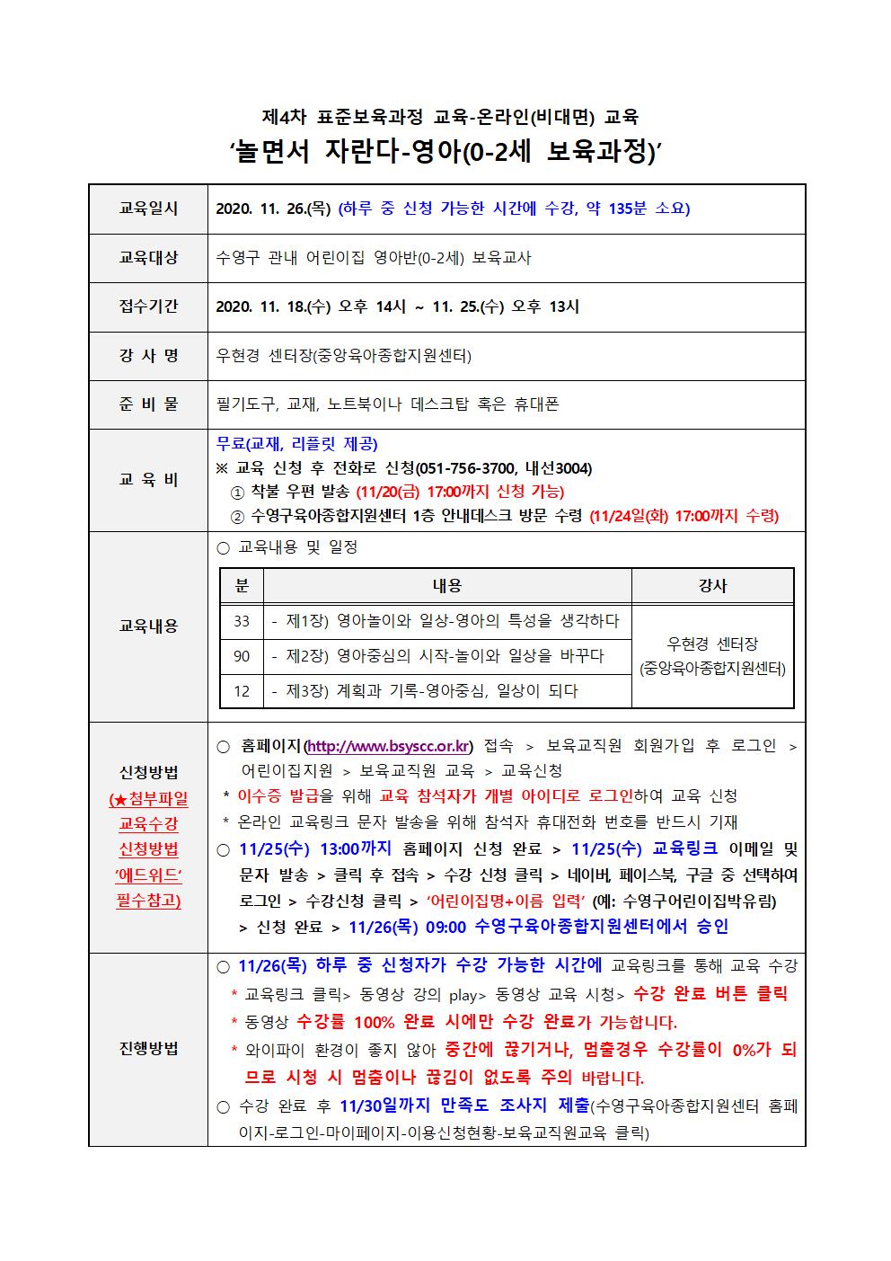 | ½Åû±â°£ | 2020-11-18(¼ö) 14½Ã ~ ¸¶°¨ ½Ã±îÁö (¼ö¿µ±¸ °ü³» ¾î¸°ÀÌÁý ¿µ¾Æ¹Ý º¸À°±³»ç) | ||