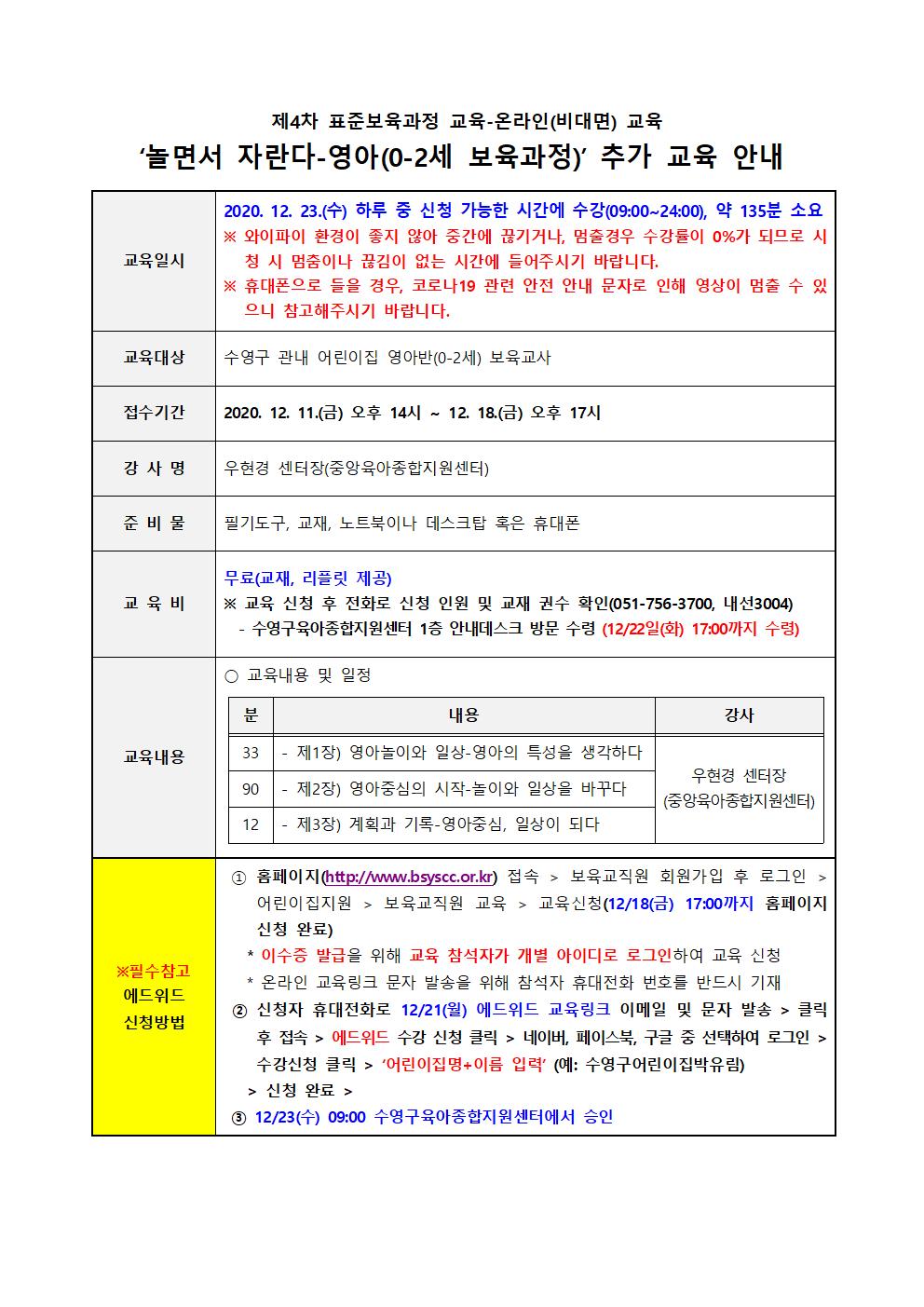 | ¿Â¶óÀÎ) '³î¸é¼ ÀÚ¶õ´Ù-¿µ¾Æ(0-2¼¼ º¸À°°úÁ¤)' Ãß°¡ ±³À° ¾È³» | |||