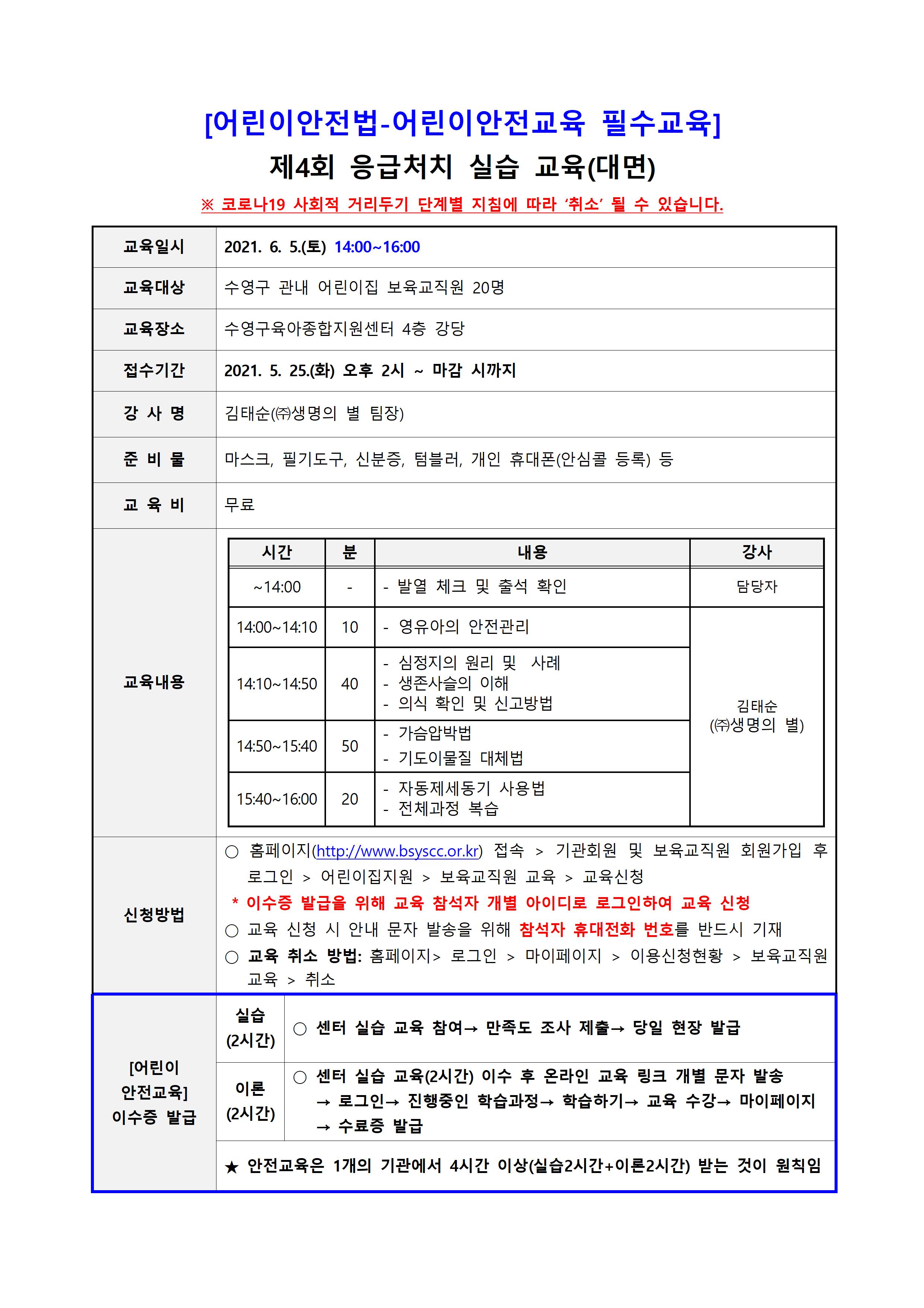 | [¾î¸°À̾ÈÀü±³À°] Á¦4ȸ ÀÀ±Þóġ(½ÉÆó¼Ò»ý¼ú) ½Ç½À ±³À°(¾î¸°À̾ÈÀü¹ý°ü·Ã Çʼö±³À°) | |||